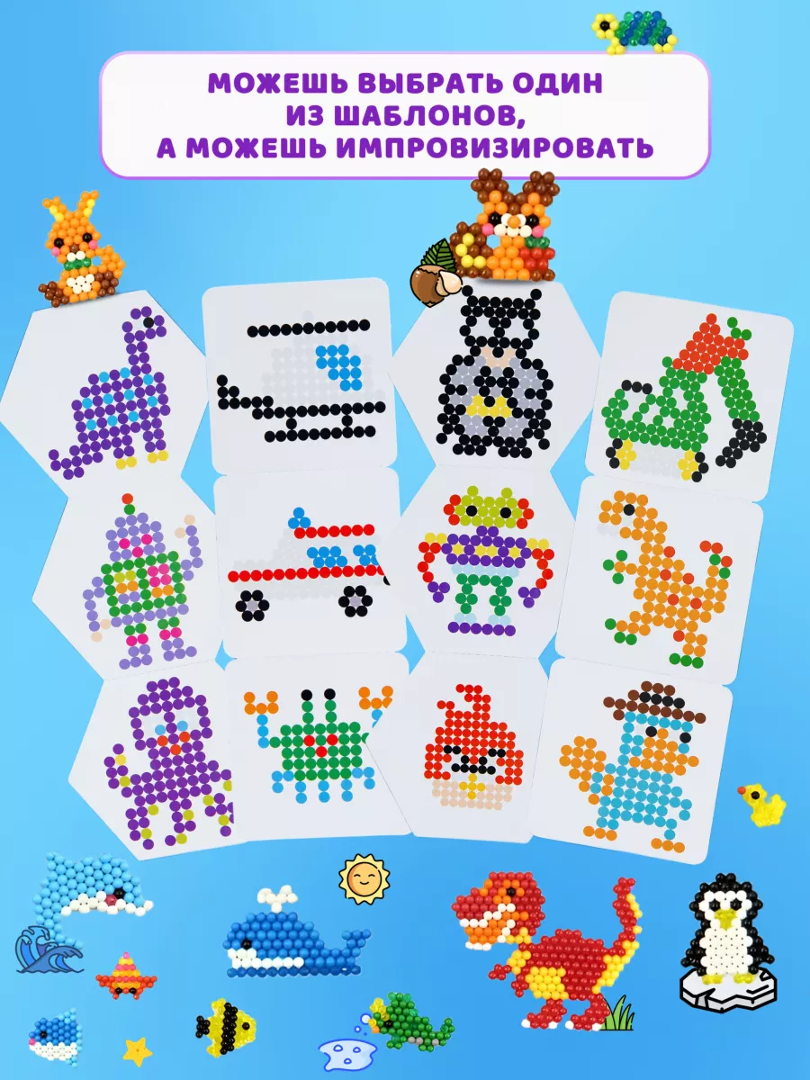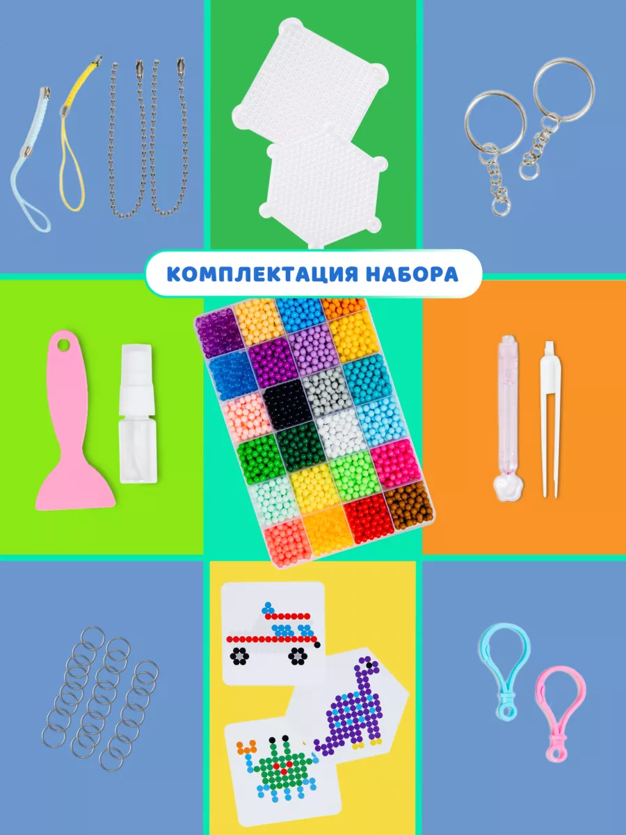 Количество элементов бусины 24 цвета 2400 шт; основы для аква мозаика лопатка распылитель специальная ручка пинцет; шаблоны
