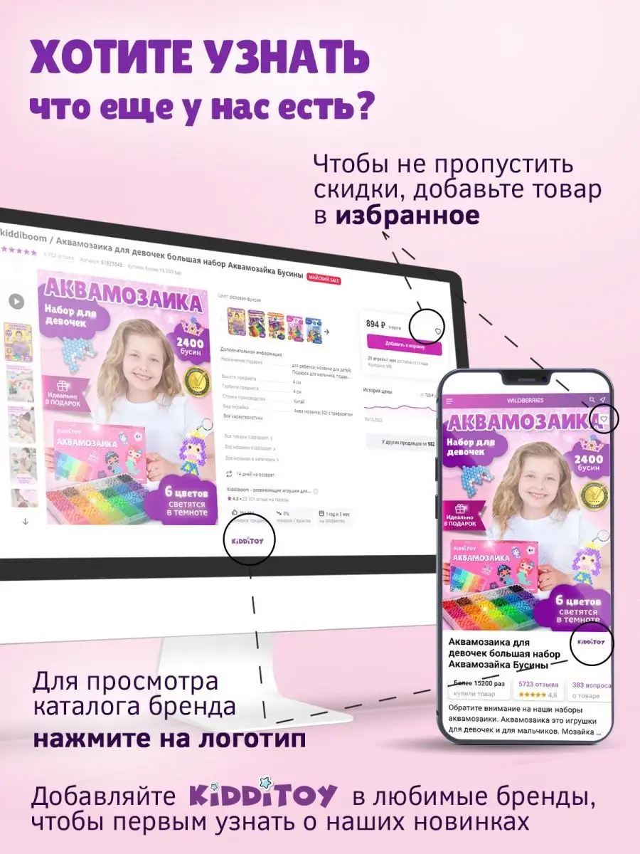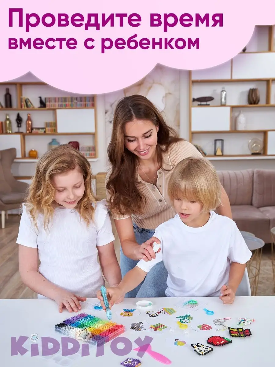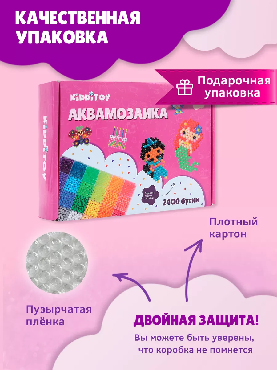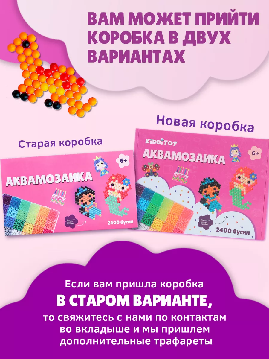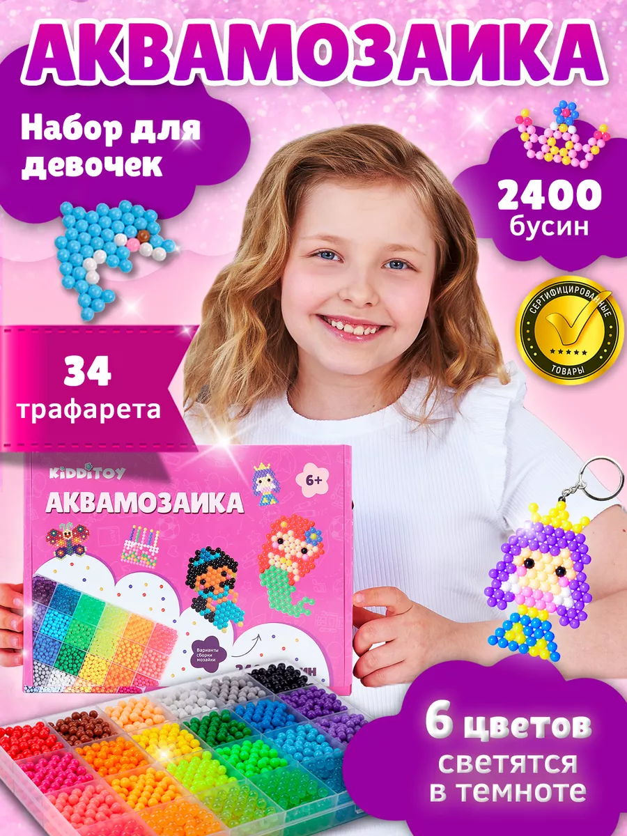 Количество элементов аксессуары и инструкция (собери-сложи по образцу); красочных шаблоны, формы для выкладки бусин; водные бусины (24 цвета, 6 светятся в темноте)