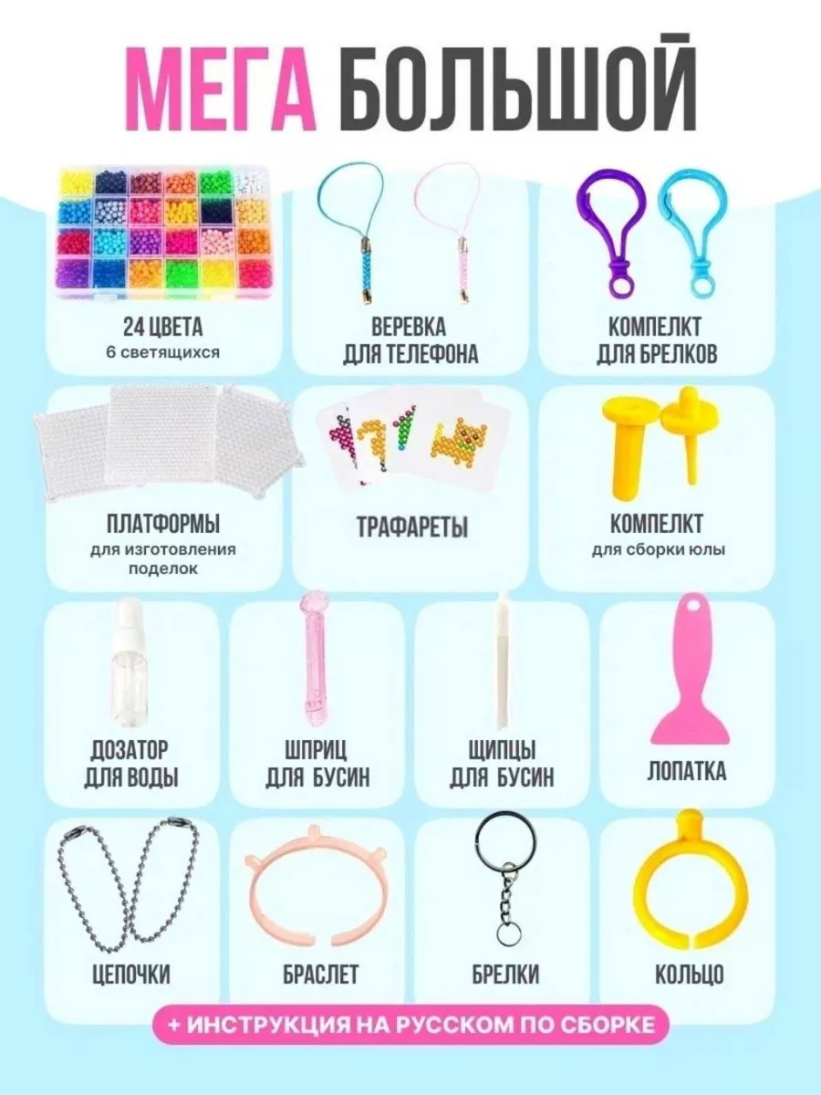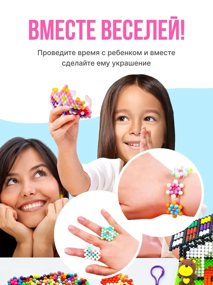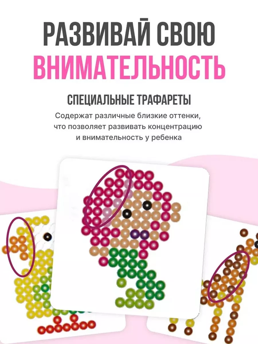 Артикул 150834081 Количество элементов 9 элементов; 3600 бусин; трафареты карточки собери сложи по образцу задания