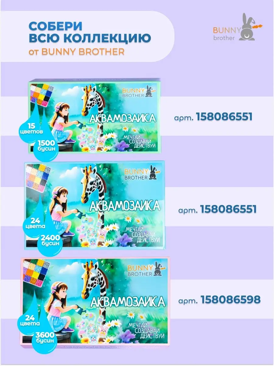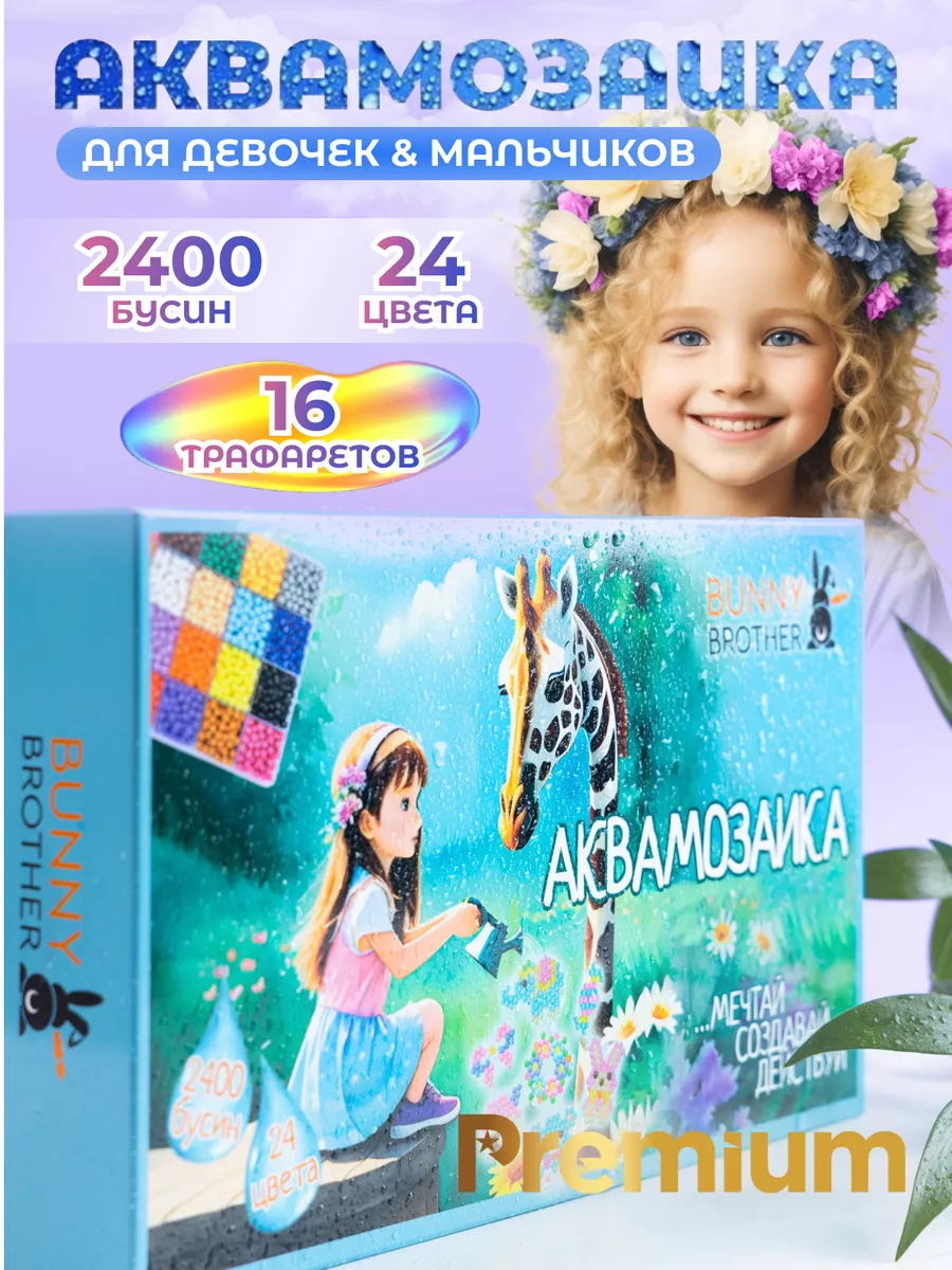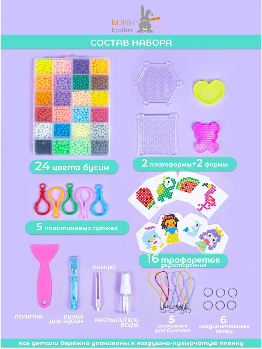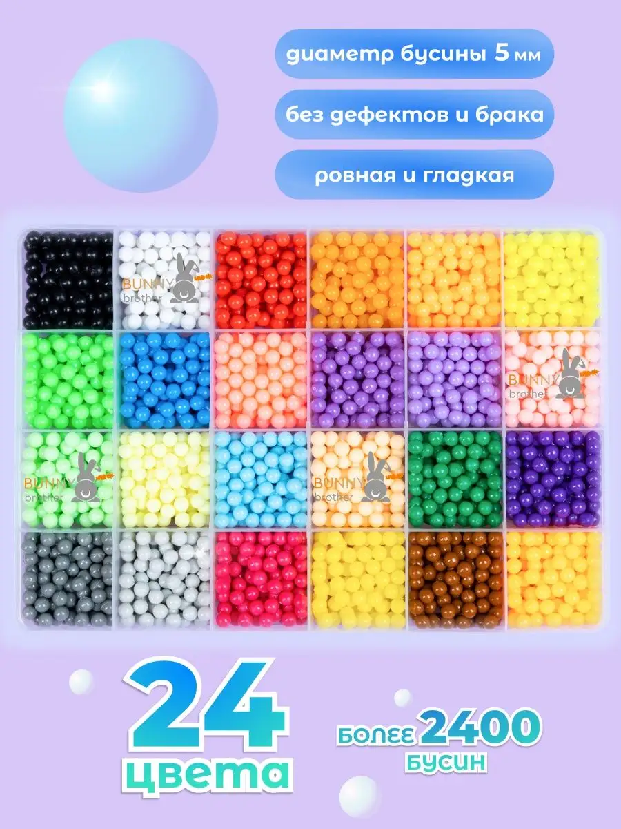 Артикул 158086598 Количество элементов 24 цвета; 2400 бусин; 16 трафаретов