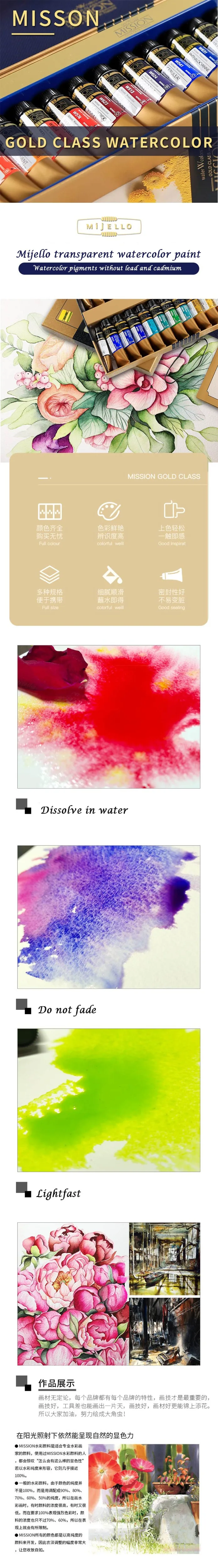 Корея Mijello Top MISSION Акварельная краска Золото Мастер-класс Высокие концентрации Природный пигмент Художник Акварель Aquarela