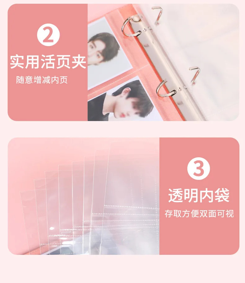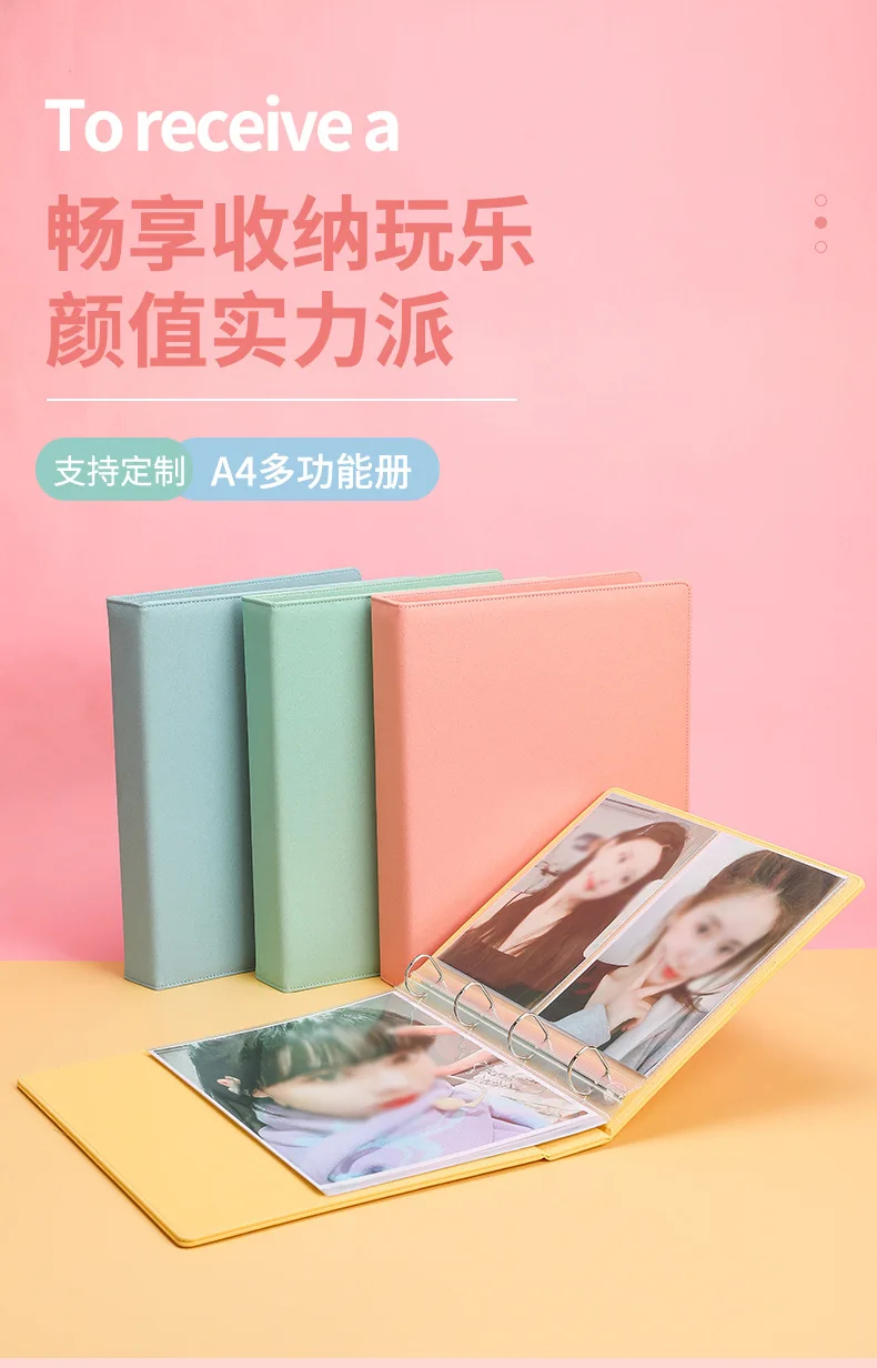Альбом для фотографий А4, папка с прозрачными рукавами, 4 кольца, открытка Kpop, коллекционное прозрачное, 10 листов, 4, 8, 9, 2 кармана