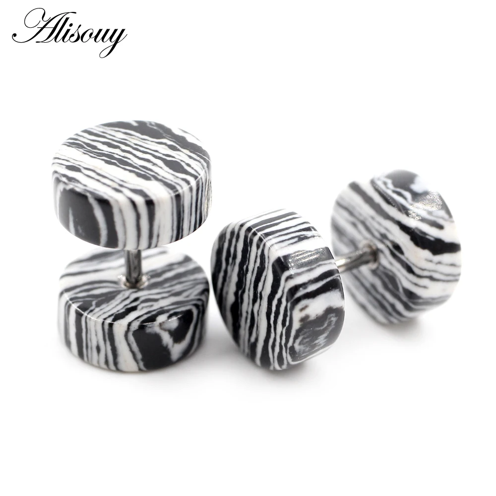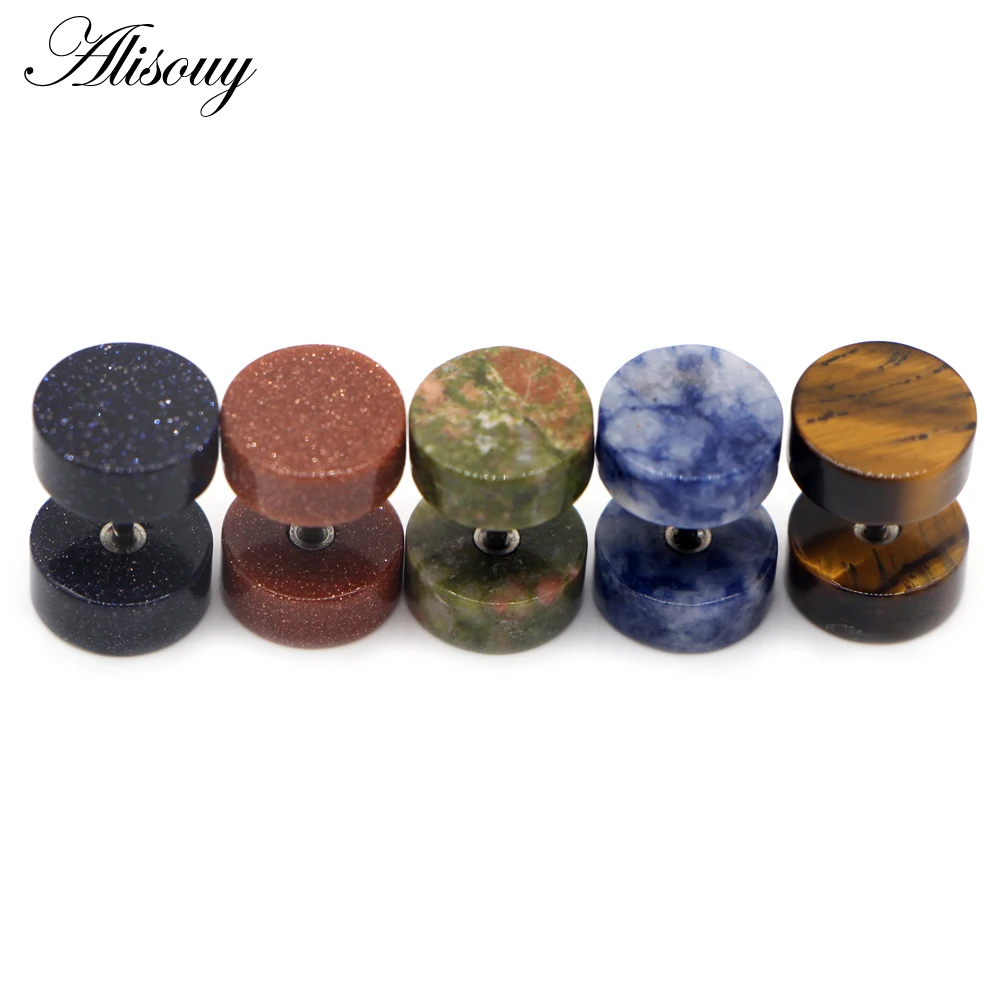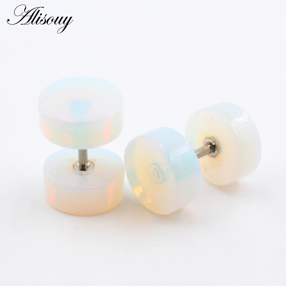 Alisouy 2PCS Women Men Natural stone tunnels Earring Barbell Tragus Cartilage fake Ear plugs piercing body jewelry earrings