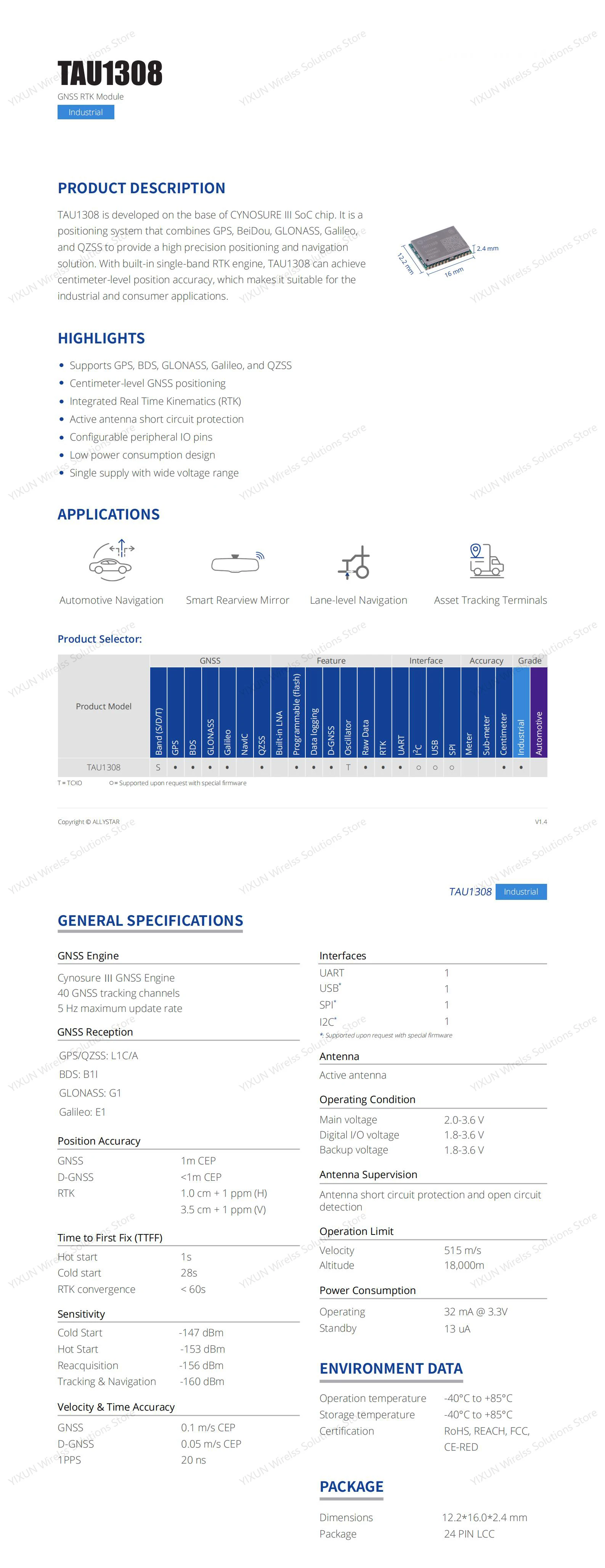 Allystar TAU1308 промышленный GNSS RTK модуль позиционирования, макетная плата GPS BDS GLONASS Galileo QZSS сантиметровая навигация