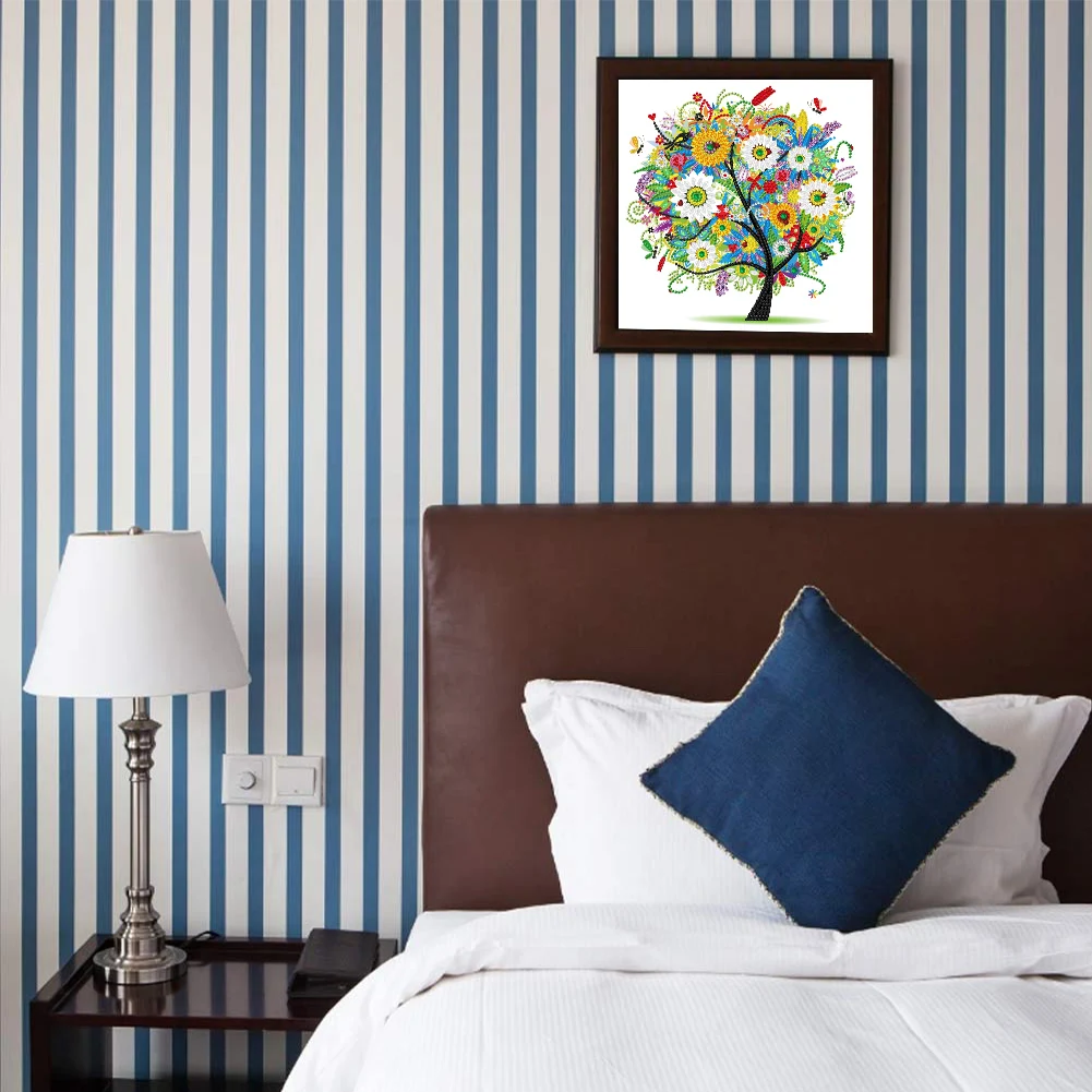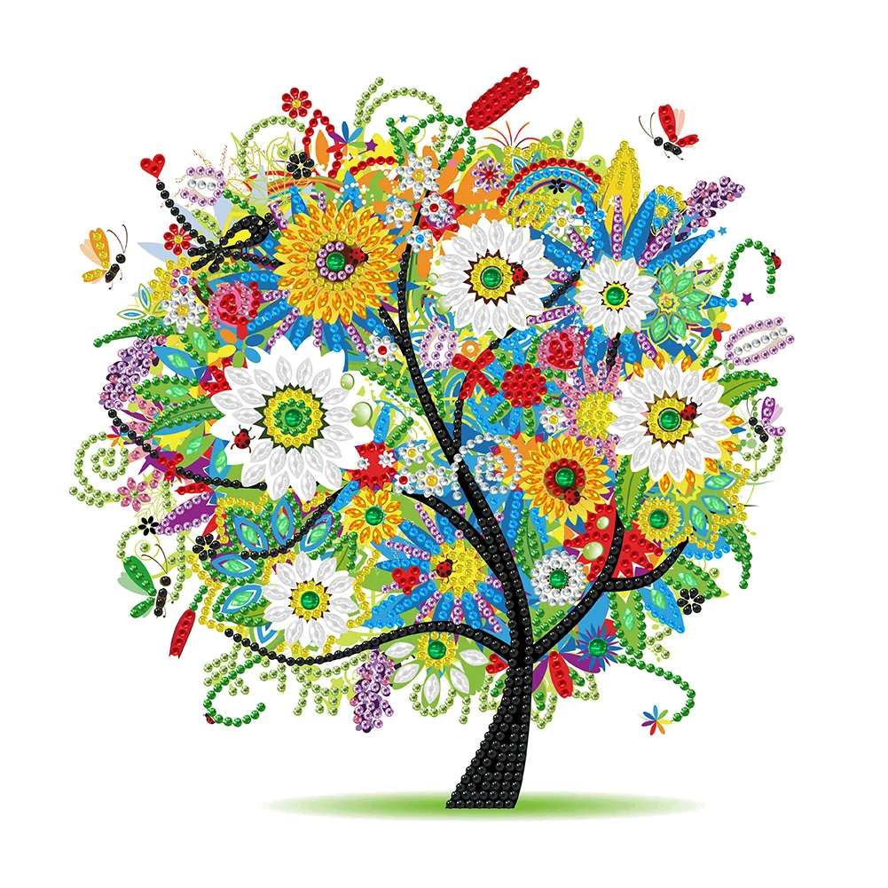 Алмазная 5d-картина «Дерево жизни» с цветами, особая форма, частичное сверло, алмазная вышивка, ремесла, мозаика, картина для стены и дома