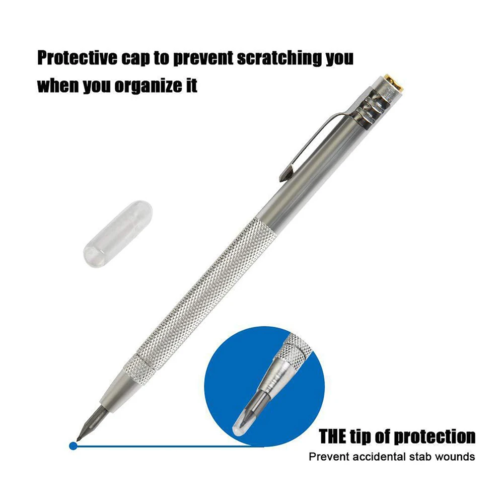 * Стеклянный писк имеет прочный наконечник из карбида вольфрама, алюминиевый корпус делает его легко работает на твердых материалах, включая закаленную сталь, нержавеющую сталь, керамика и стекло.