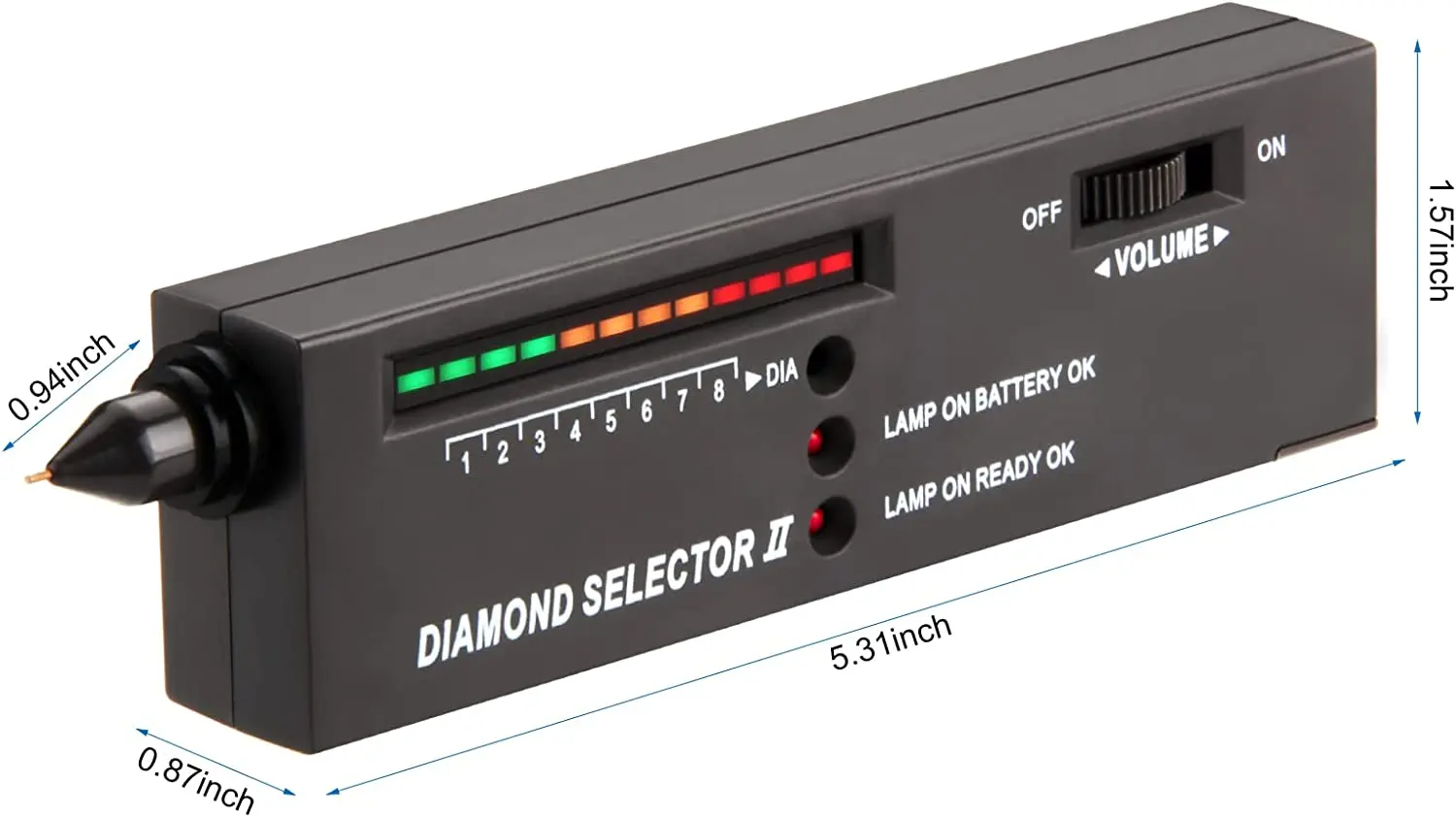 Загорится красный свет, и зазвонит звуковой индикатор, если камень настоящий бриллиант.