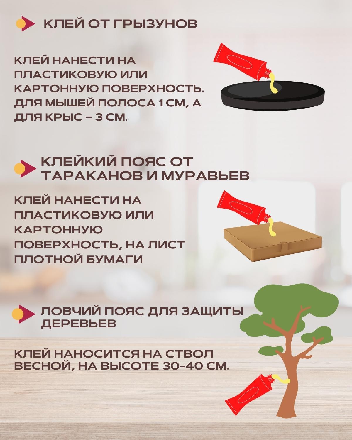 Описание: Клей ALT – высокоэффективный препарат для борьбы с грызунами и насекомыми. Поставляется в тубах объемом 135 г. Имеет вид прозрачной густой массы, без специфического запаха. Нетоксичен, влагостоек. Благодаря высокой вязкости позволяет быстро создавать клеевые ловушки в местах скопления вредителей.
