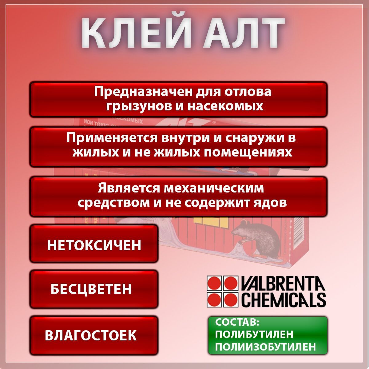 Альт (ALT) клей от грызунов (крыс и мышей) и насекомых (клейкий пояс) 135г.