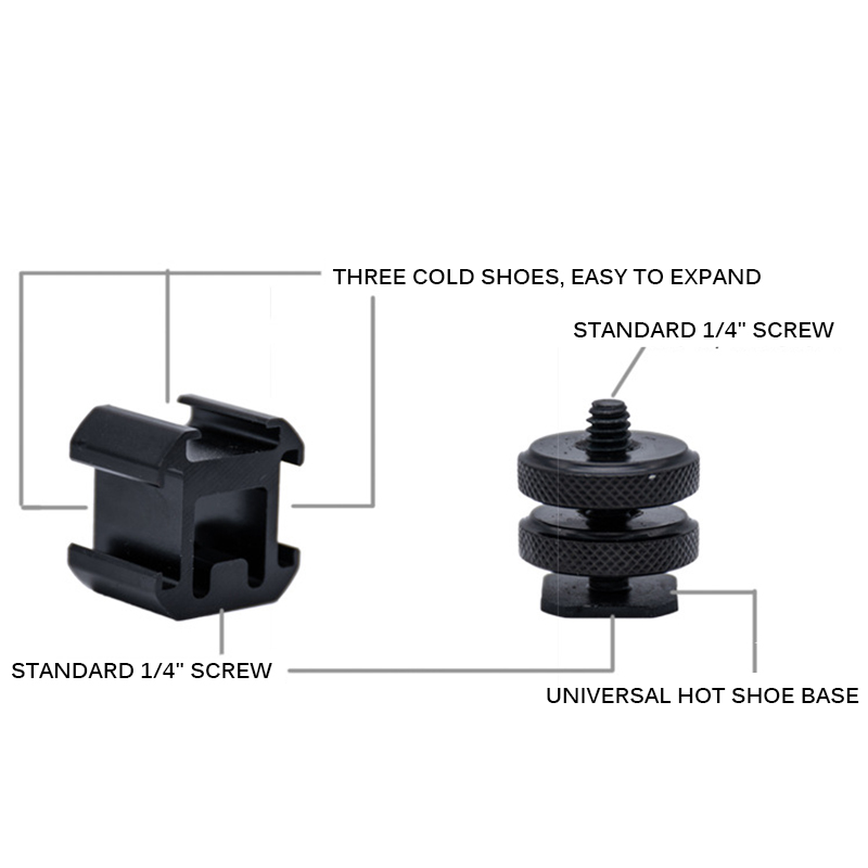 There are 3 cold shoe mount adapter to allow you to add a variety of devices at will, such as microphone, LED video light, monitor and so on. Small devices can create unlimited imagination for your photography.