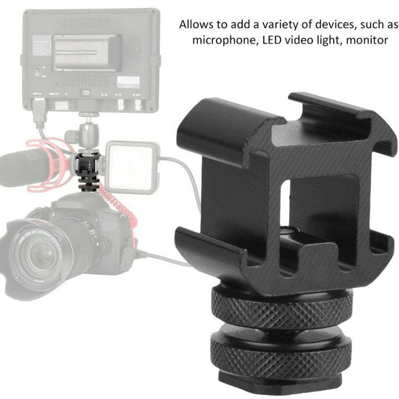 Алюминиевая камера крепление-адаптер для горячего башмака видео тройной Холодный башмак Кронштейн освещения светодиодный светодиодных мониторов микрофонов студийная вспышка Видео