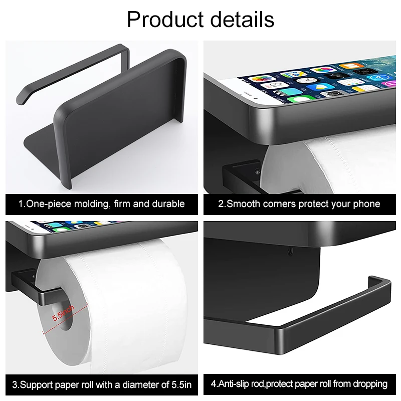 Алюминиевый черный держатель для туалетной бумаги с полкой