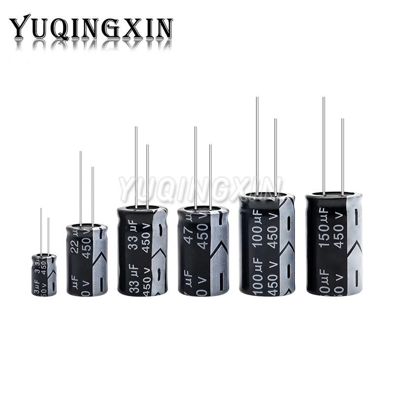 Алюминиевый электролитический конденсатор 450 в, 1 мкФ, 2,2 мкФ, 3,3 мкФ, 4,7 мкФ, 10 мкФ, 22 мкФ, 33 мкФ, 47 мкФ, 68 мкФ, 82 мкФ, 100 мкФ, 150 мкФ, 180 мкФ, 220 мкФ, 5 шт.