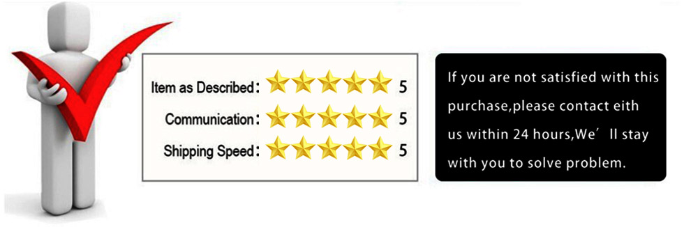 Отзывы очень важен. Мы высоко ценим, если вы дадите нам положительный отзывы с 5 звездами, и мы также сделаем то же самое для вас. Если по какой-либо причине вы не удовлетворены своей покупкой. Пожалуйста, немедленно свяжитесь с нами, прежде чем оставить нейтральный или отрицательный отзывы, или возбудите спор. Мы постараемся сделать все возможное, чтобы обслуживать вас до тех пор, пока вы не расстанетесь. Мы постараемся сделать все возможное, чтобы Вы остались довольны покупкой.