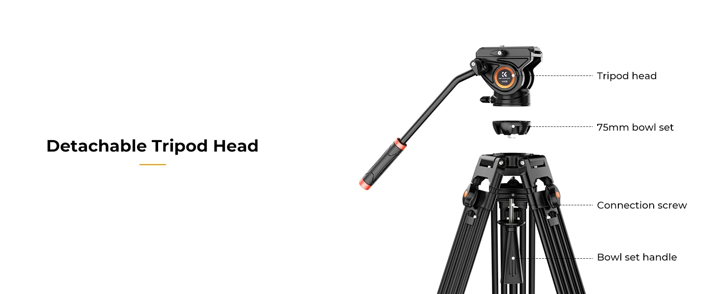 • С помощью системы баланса и управления демпфированием видеоголовка может достигать панорамирования на 360 ° и наклона-70 °/90 °, что подходит для панорамного обзора, сверху вниз, и съемка под низким углом. Съемная ручка удобна для использования левой и правой рукой.