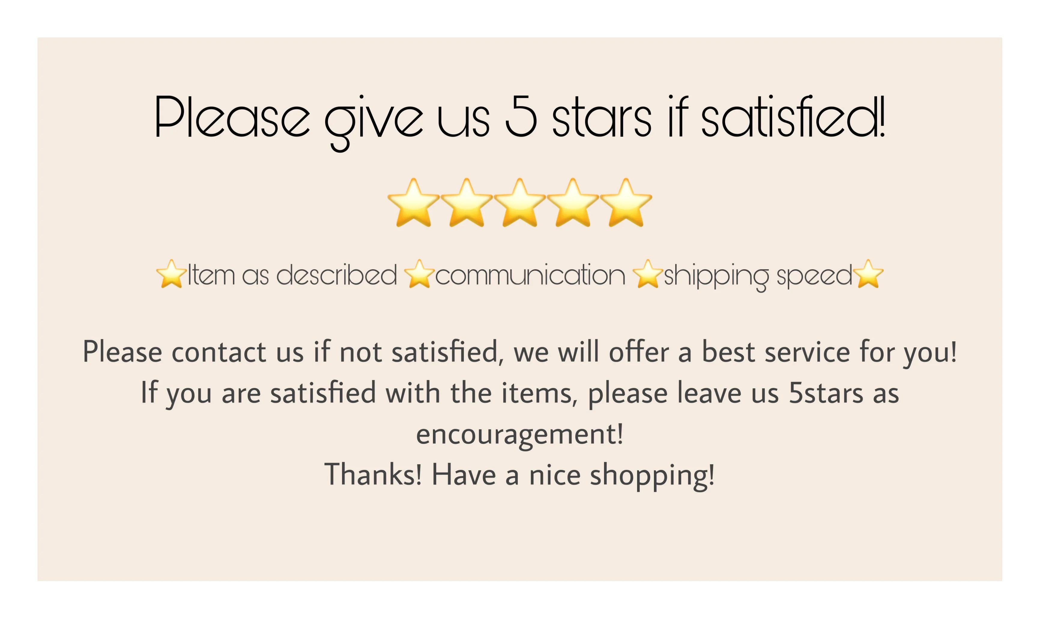 Мы добрый и честный продавец! Если вам нравятся наши товары, пожалуйста, не стесняйтесь оставить нам 5-звездочный обзор.