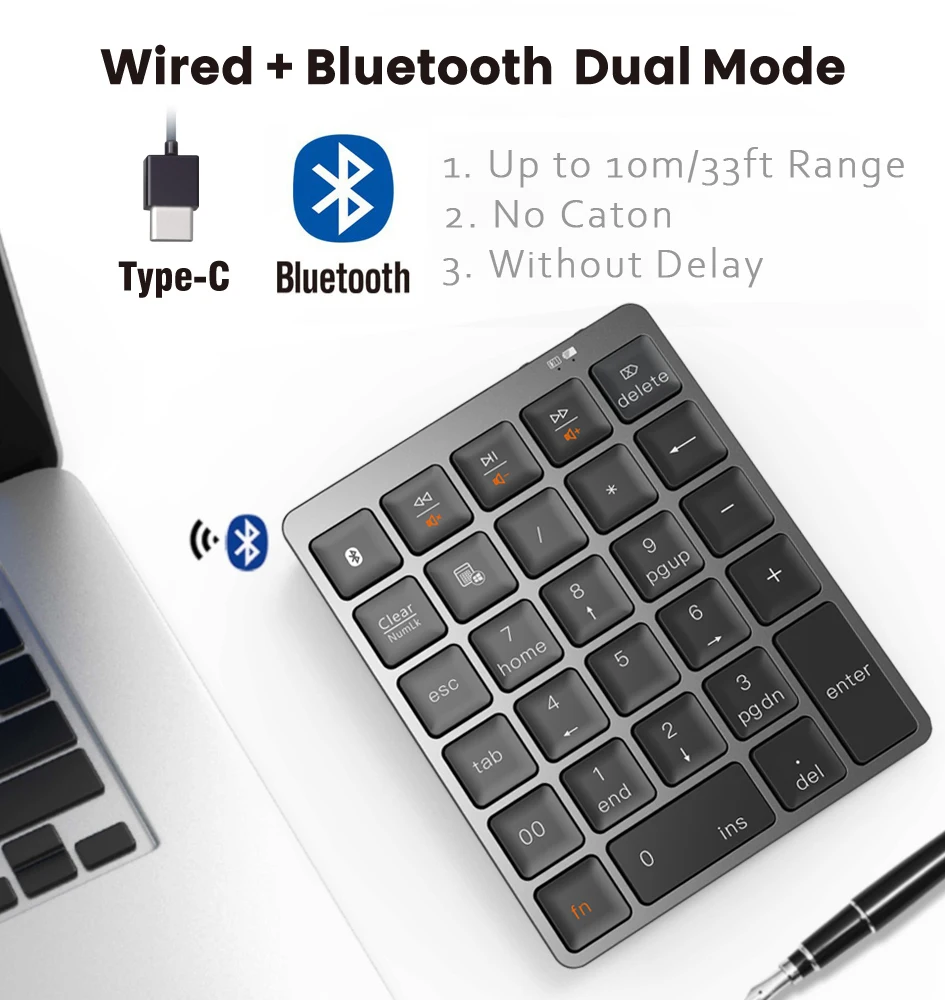 [Полноразмерная 28 клавиш с Numlock, Delete, Tab и т. Д.]-Используйте беспроводную клавиатуру с 28 функциональными клавишами, включая backspace, Home, end, Tab и другие, чтобы помочь в задачах учета, электронных таблицах Excel и т. Д. Для расширения существующей клавиатуры.