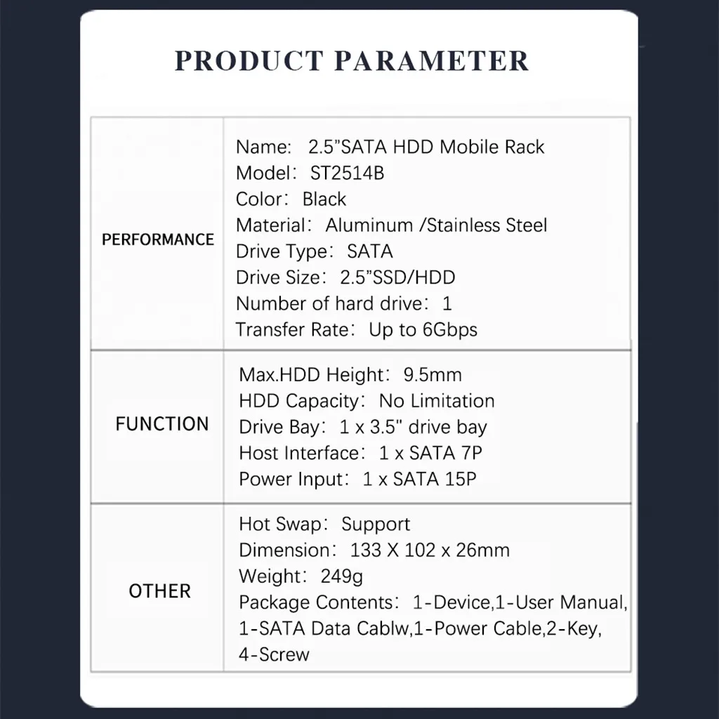 Подходит для 1x2,5-дюймового жесткого диска/твердотельного накопителя SATA и устанавливается в один 3,5-дюймовый отсек для гибких дисков