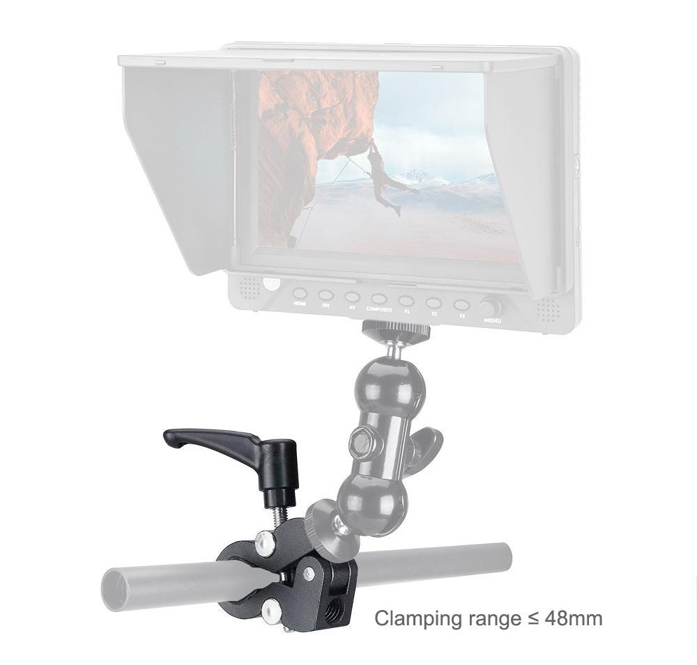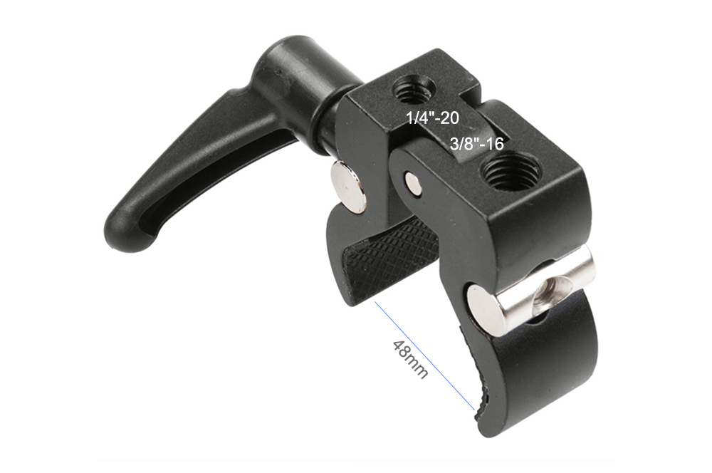 СУПЕР ЗАЖИМ-Зажим имеет гнездо 1/4-20 и 3/8-16, оба стандартных размера крепления в фотоиндустрии для головок и штативы могут использоваться для различных насадок. Как камеры, штанги 15 мм, света приведенные, зонтики, крюки, полки, стекло плиты, поперечины, ЕТК.