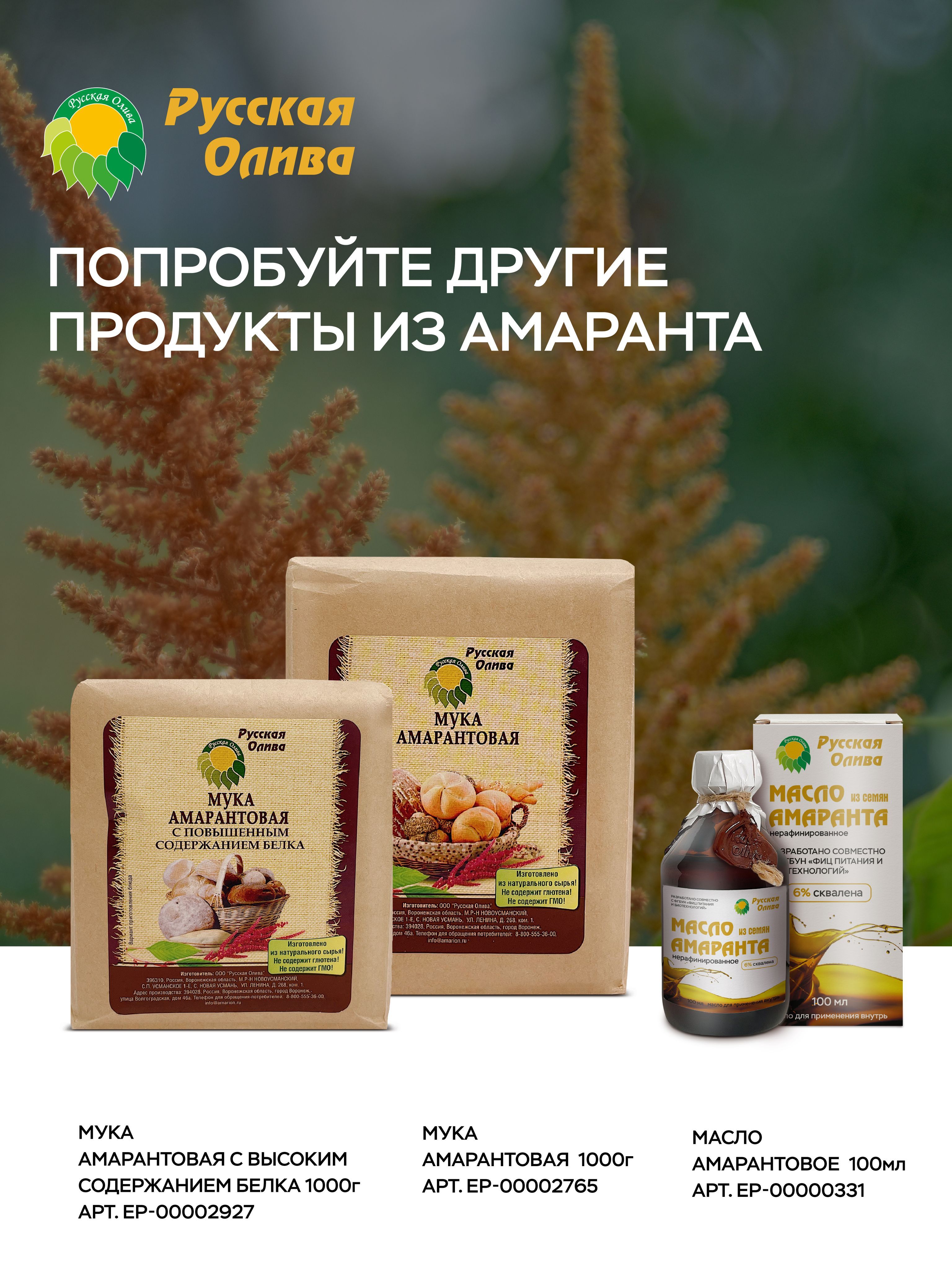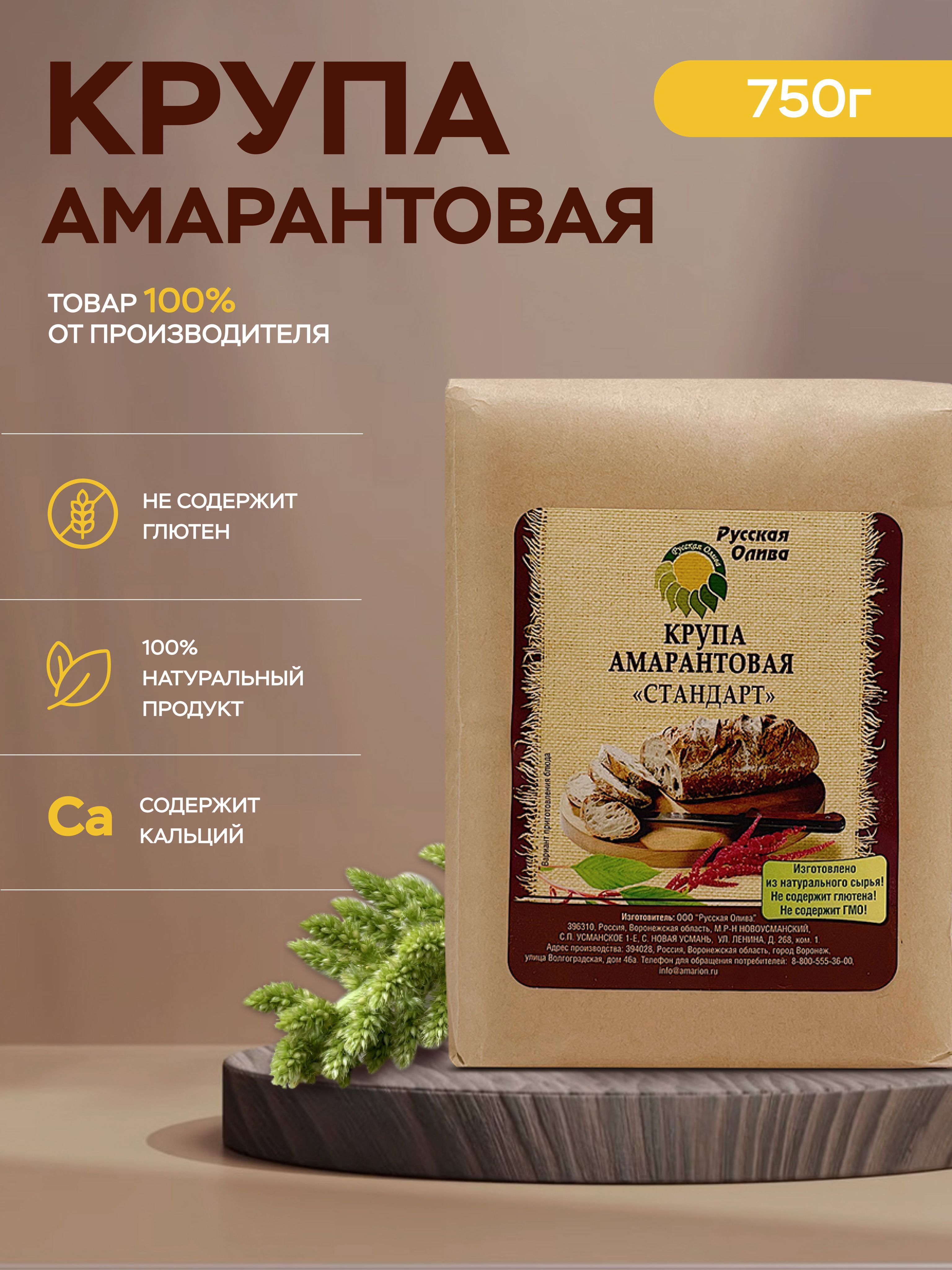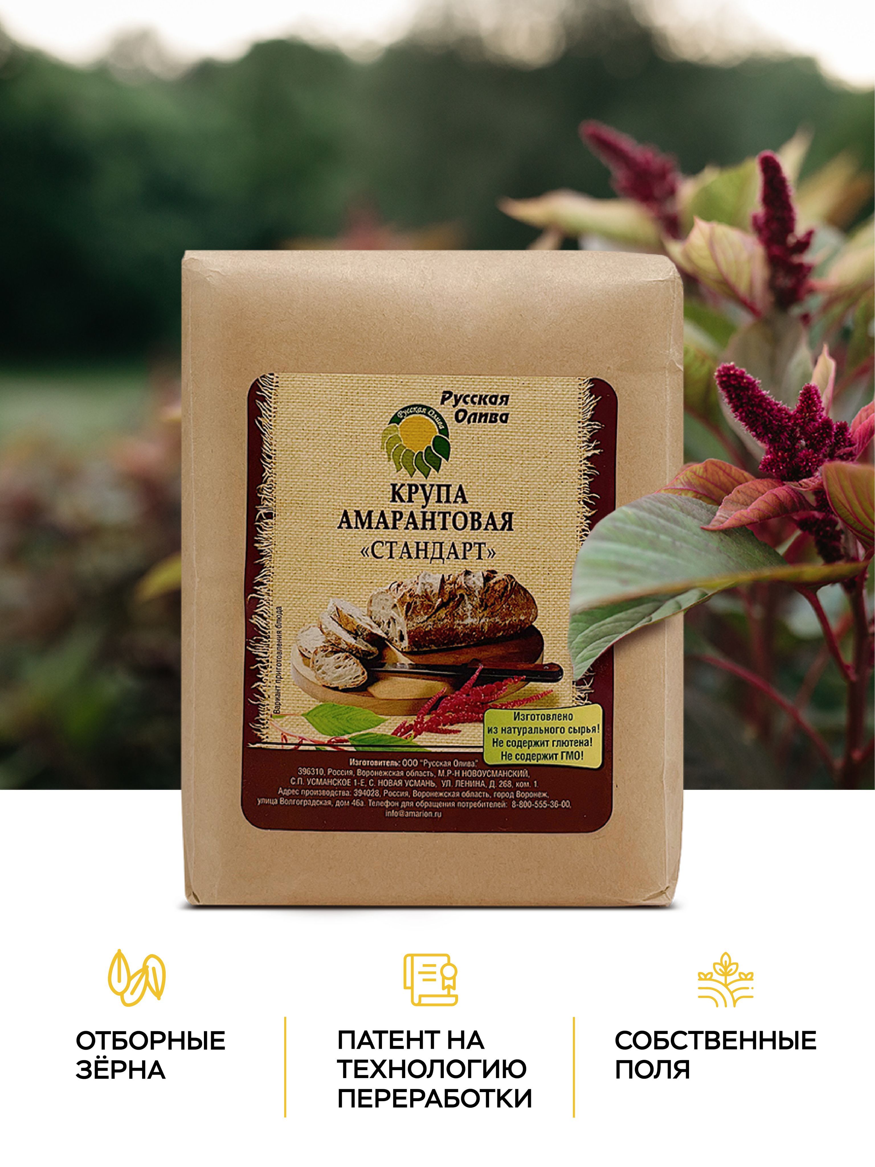 Амарантовая крупа "Русская Олива" 750 гр, диетические продукты питания, без глютена, натуральный суперфуд