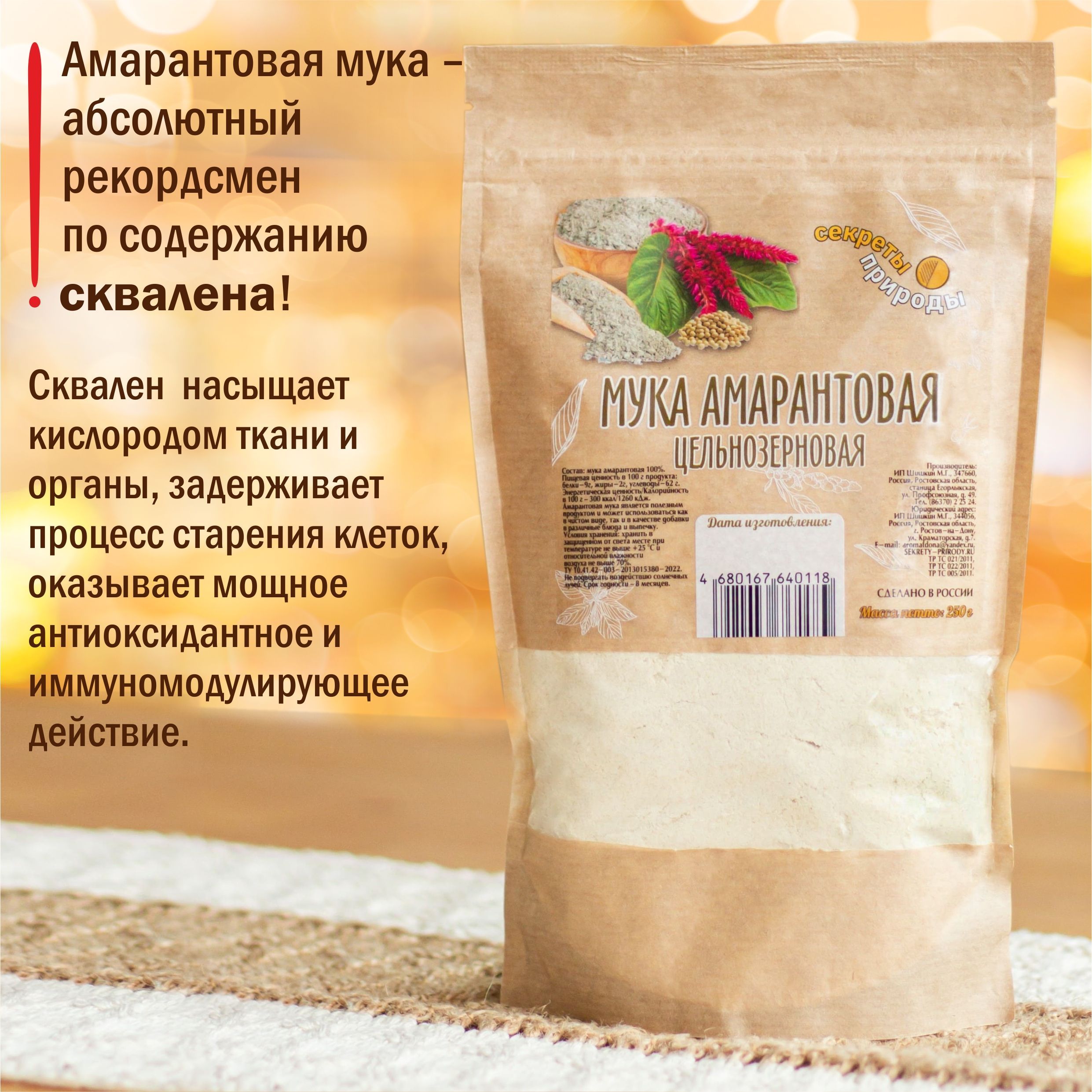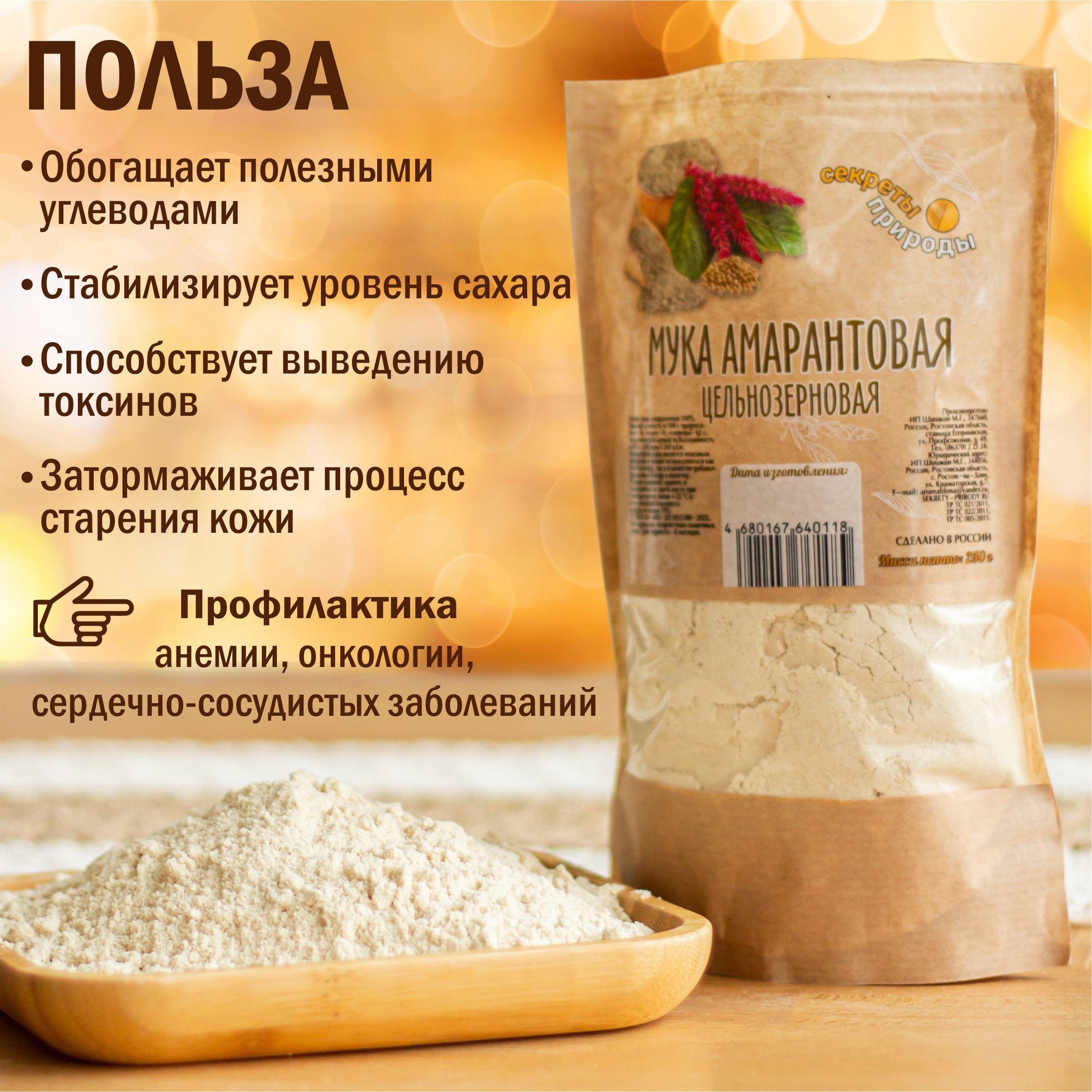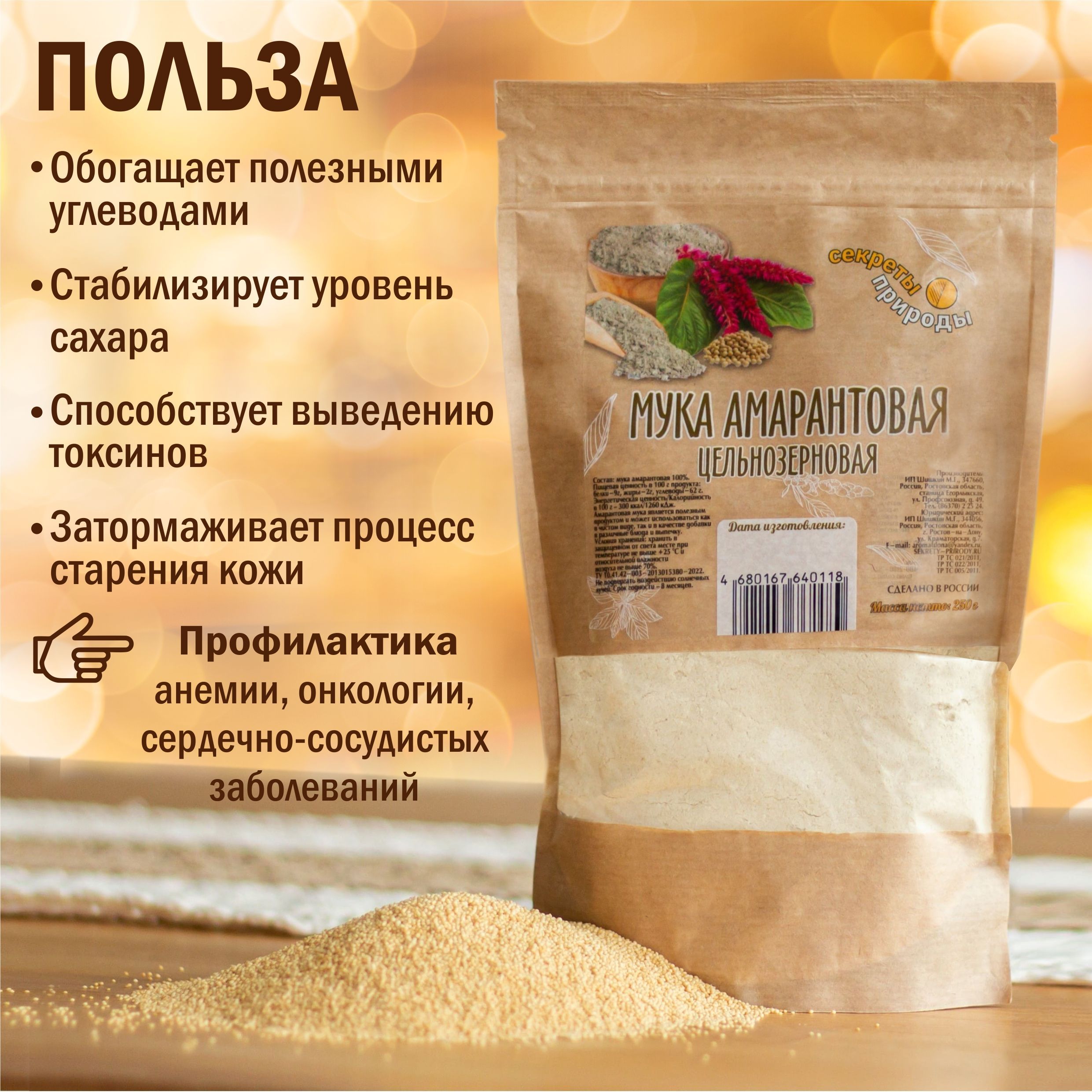 Амарантовая мука цельнозерновая, 250 г / Без глютена / Высший сорт Секреты Природы