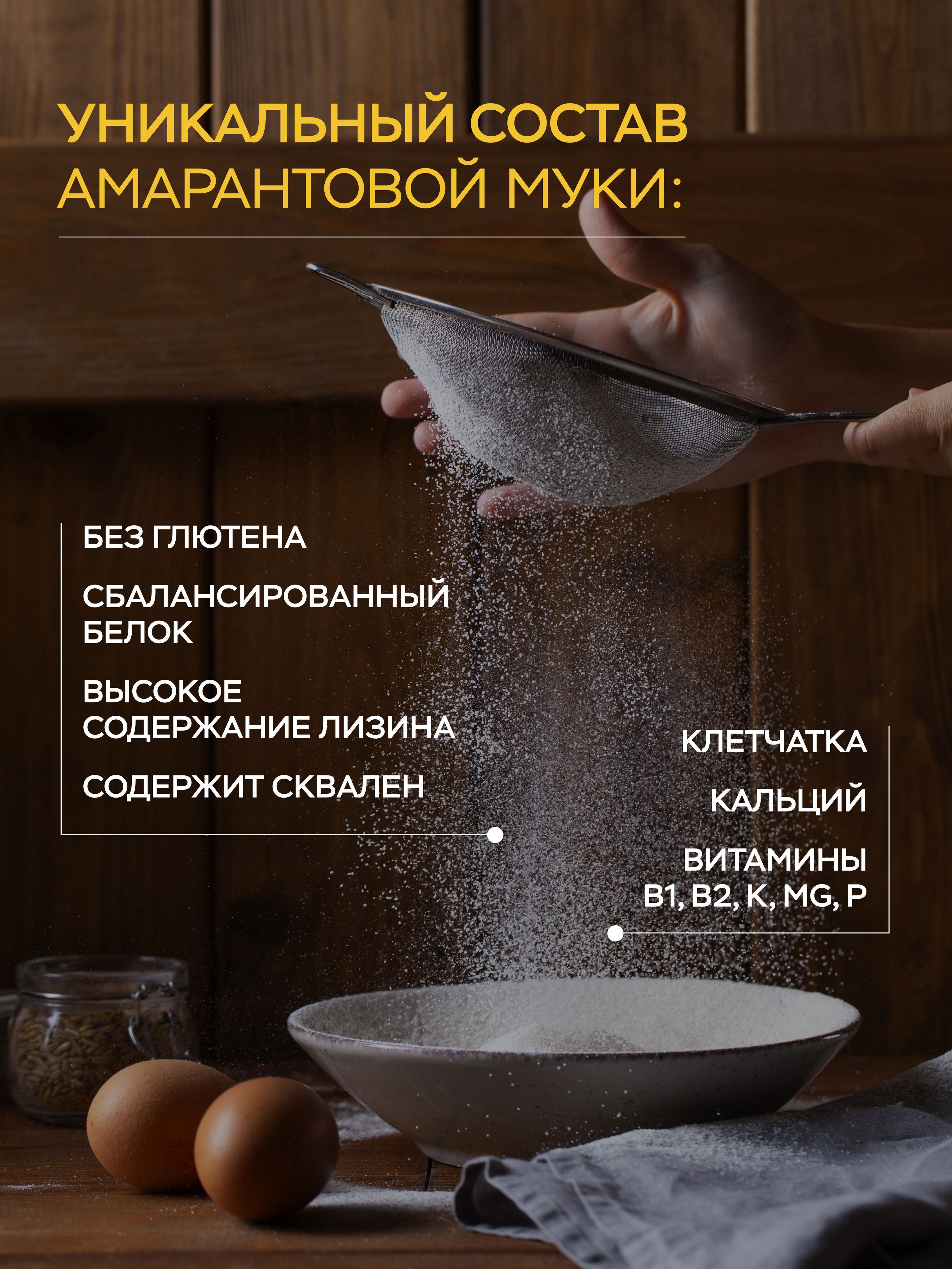 Амарантовая мука не содержит глютена, поэтому она незаменима для людей с непереносимостью этого белка.