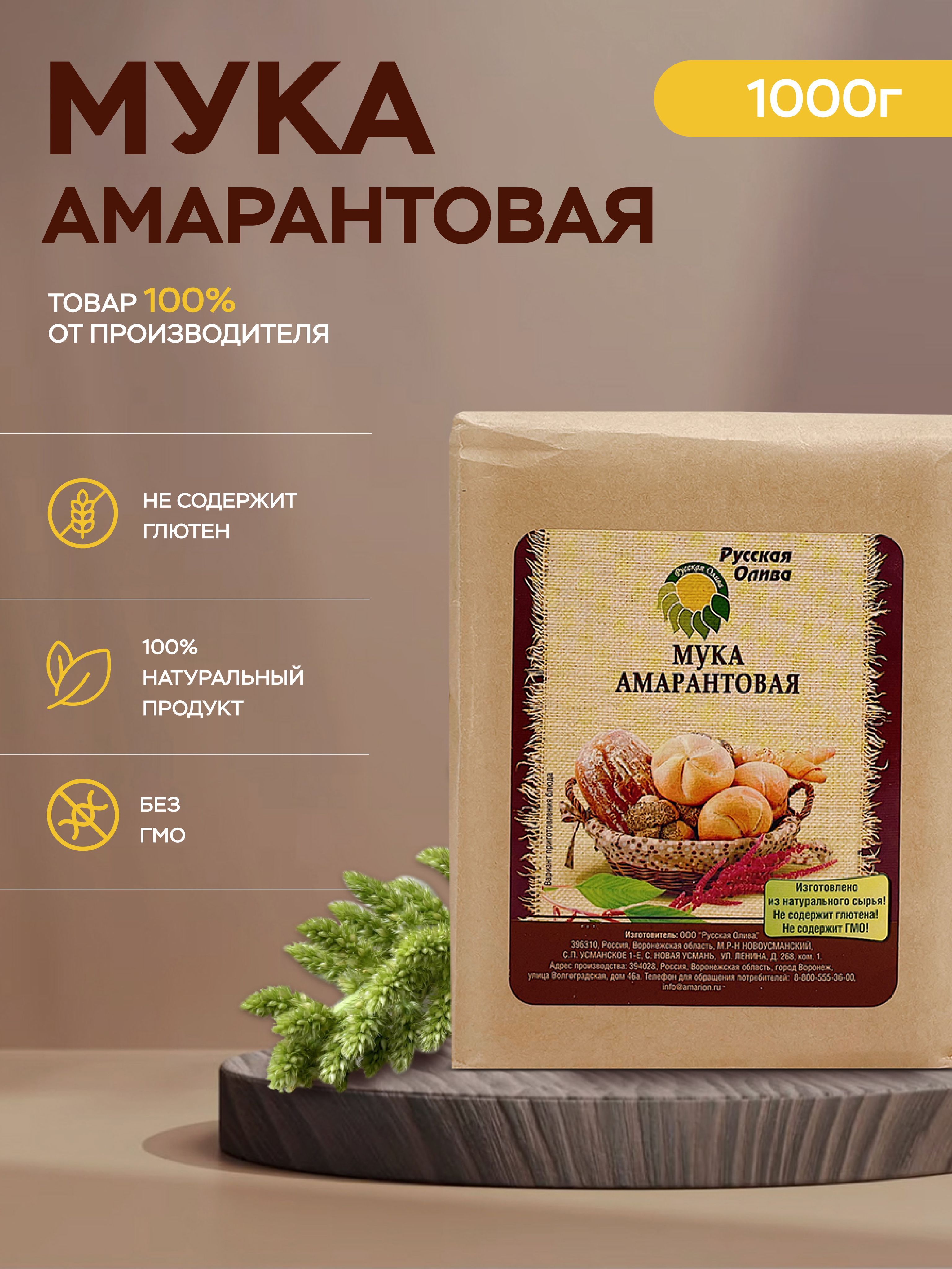 Амарантовая мука, Русская Олива, 1кг, без глютена, супер фуд, протеин