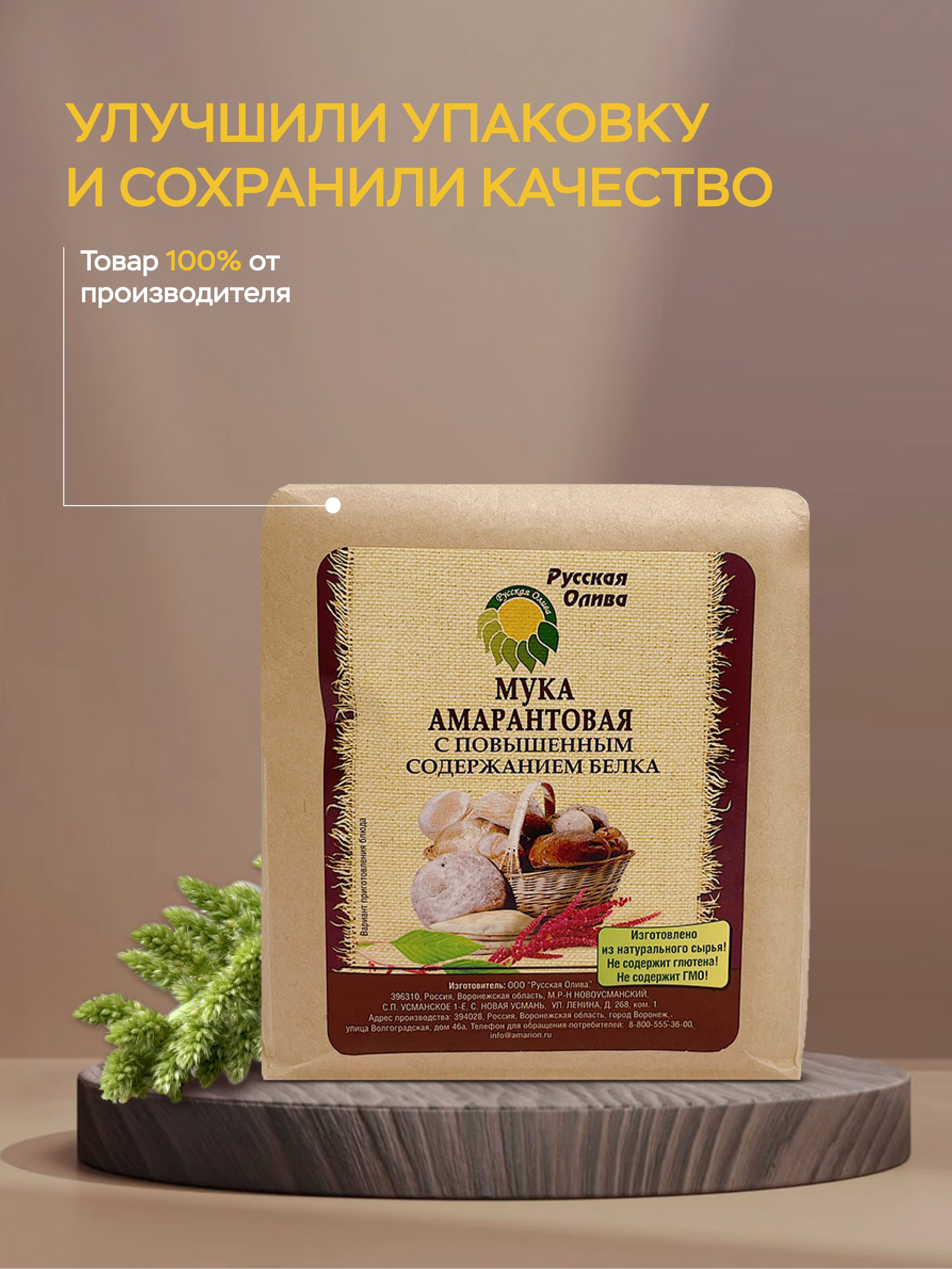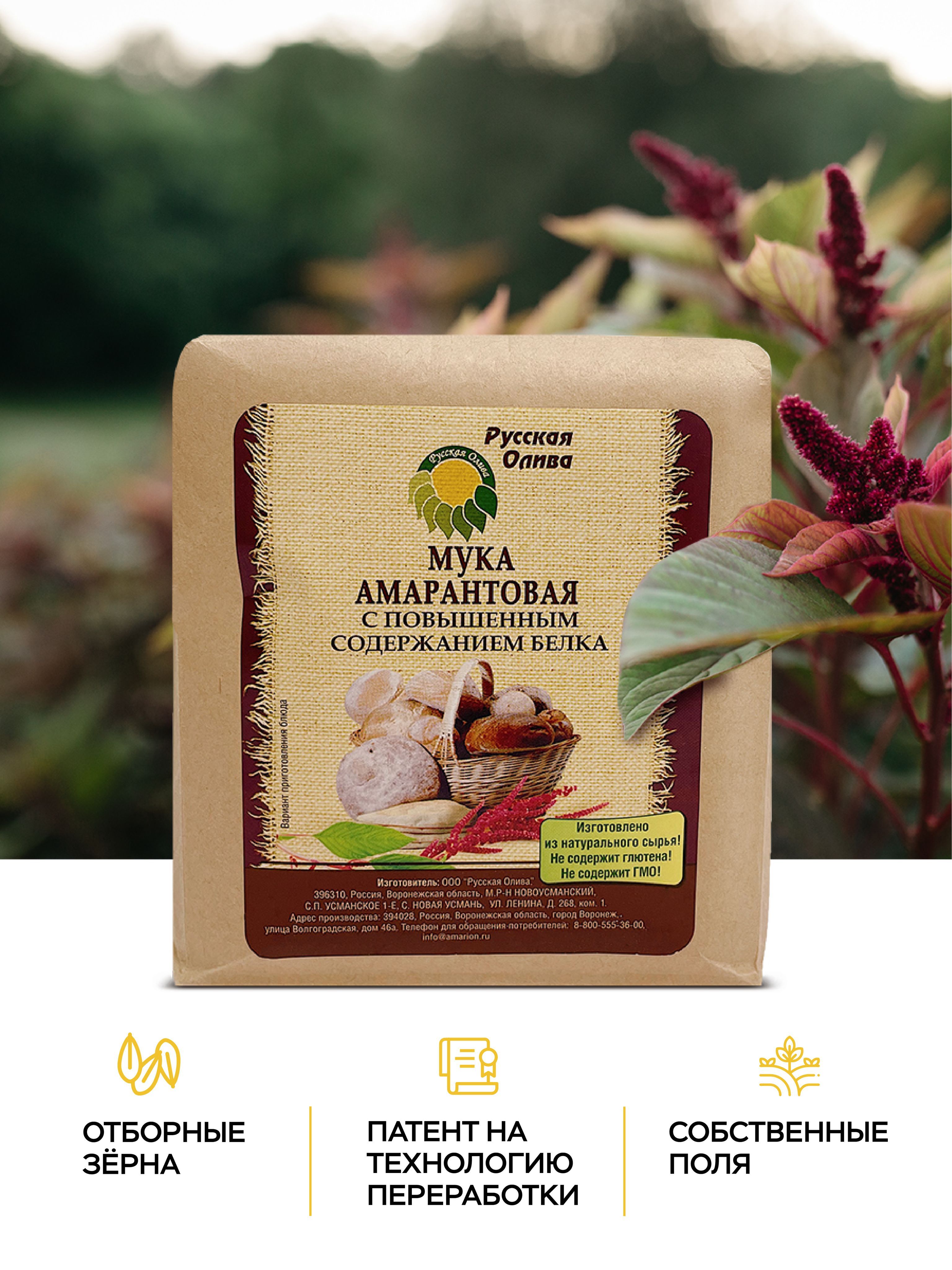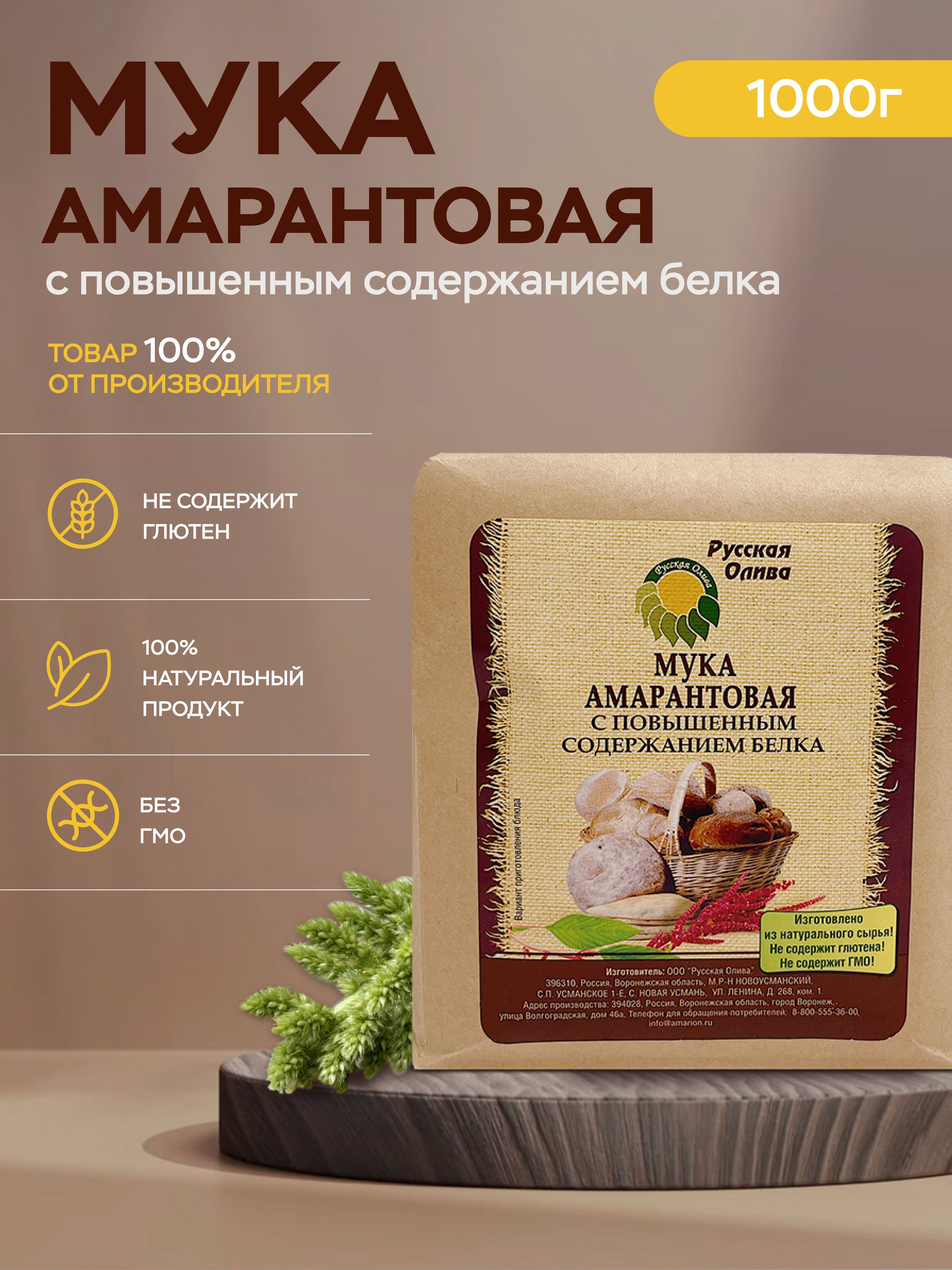 Амарантовая мука с повышенным содержанием белка, Русская Олива, 1 кг, без глютена, суперфуд, протеин
