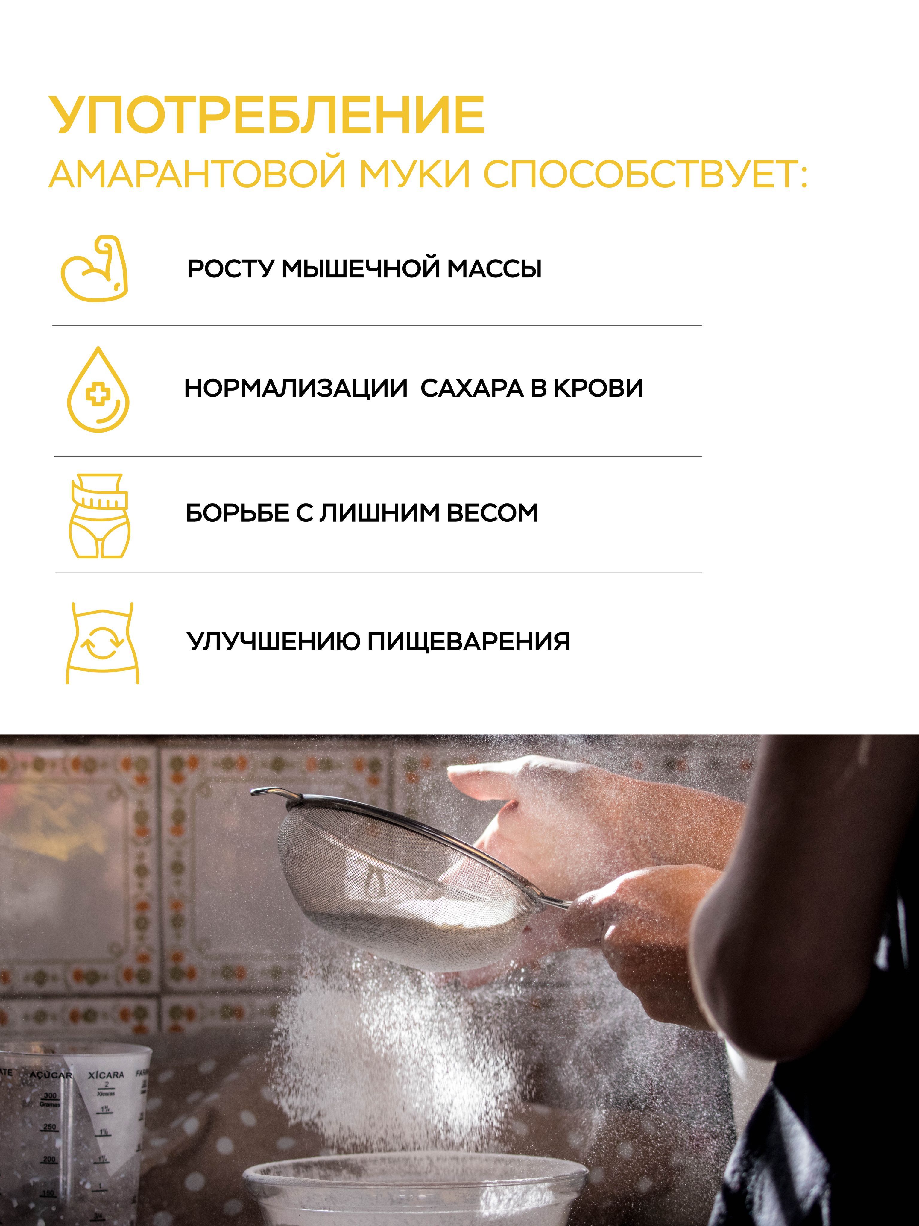 Амарантовая мука не содержит глютена, поэтому она незаменима для людей с непереносимостью этого белка.