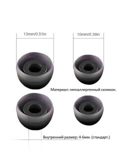 Описание: Мягкие силиконовые амбушюры совместимы с любыми внутриканальными наушниками, обладают отличной шумоизоляцией. Изготовлены из гипоаллергенного силикона нового поколения, не вызывают раздражения кожи благодаря специально подобранному PH. комплекте 2 пары, размер S - 0.8 мм, и L - 12мм. Амбушюры гипоаллергенные Small и Large. Внутренний диаметр - стандарт, 4-6мм.