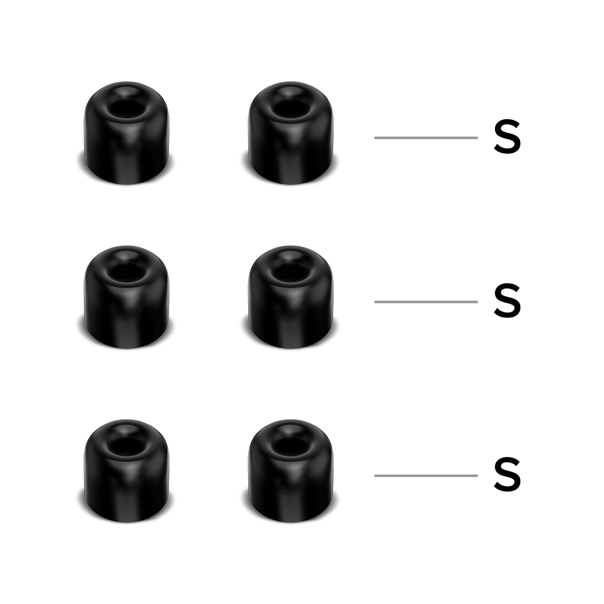 Набор из шести пар насадок для внутриканальных наушников типоразмера S – маленькие и одной пары трех-фланцевых насадок размера S.