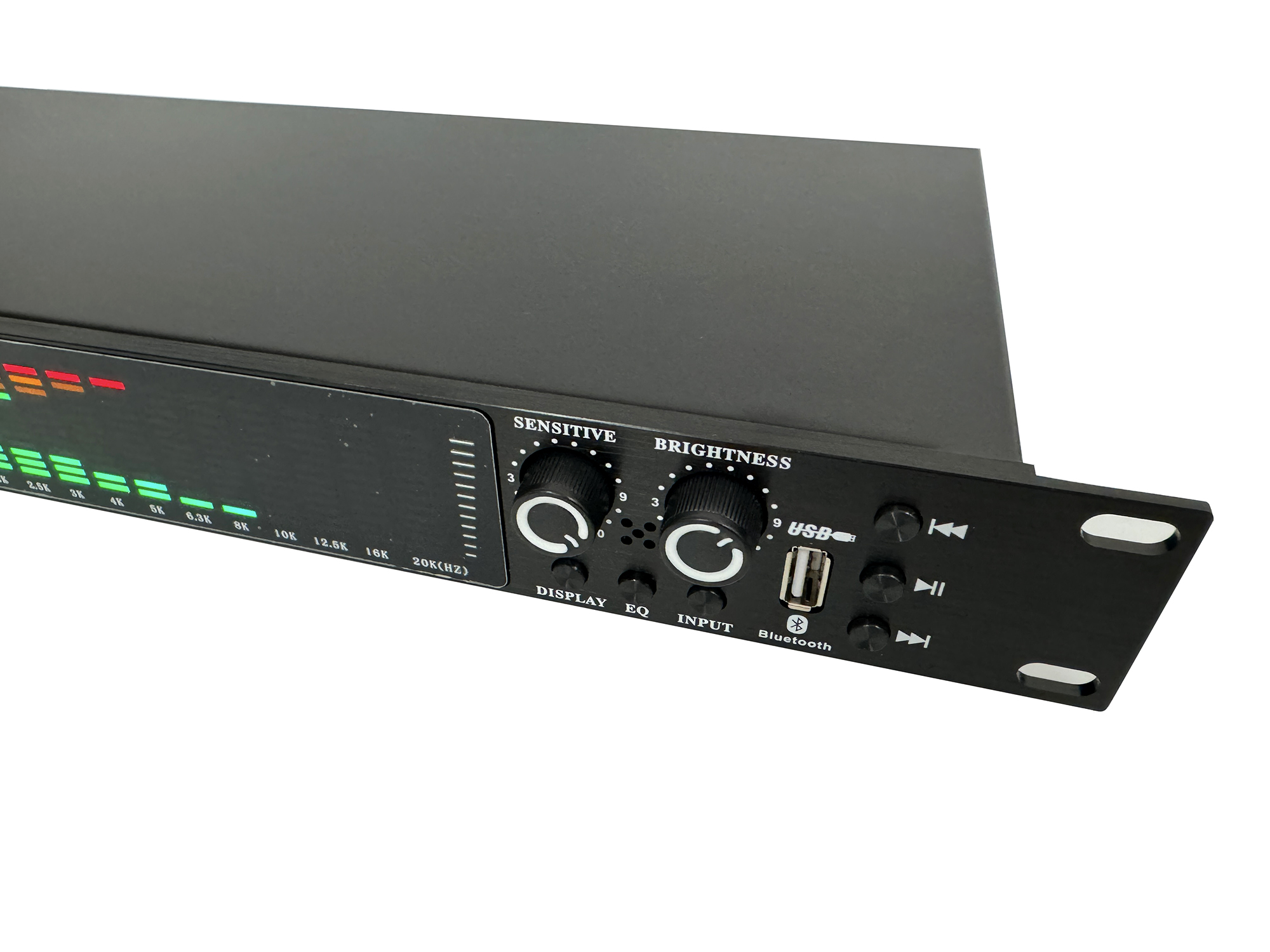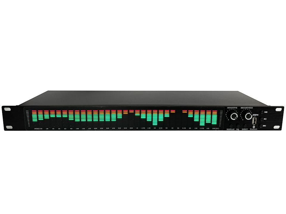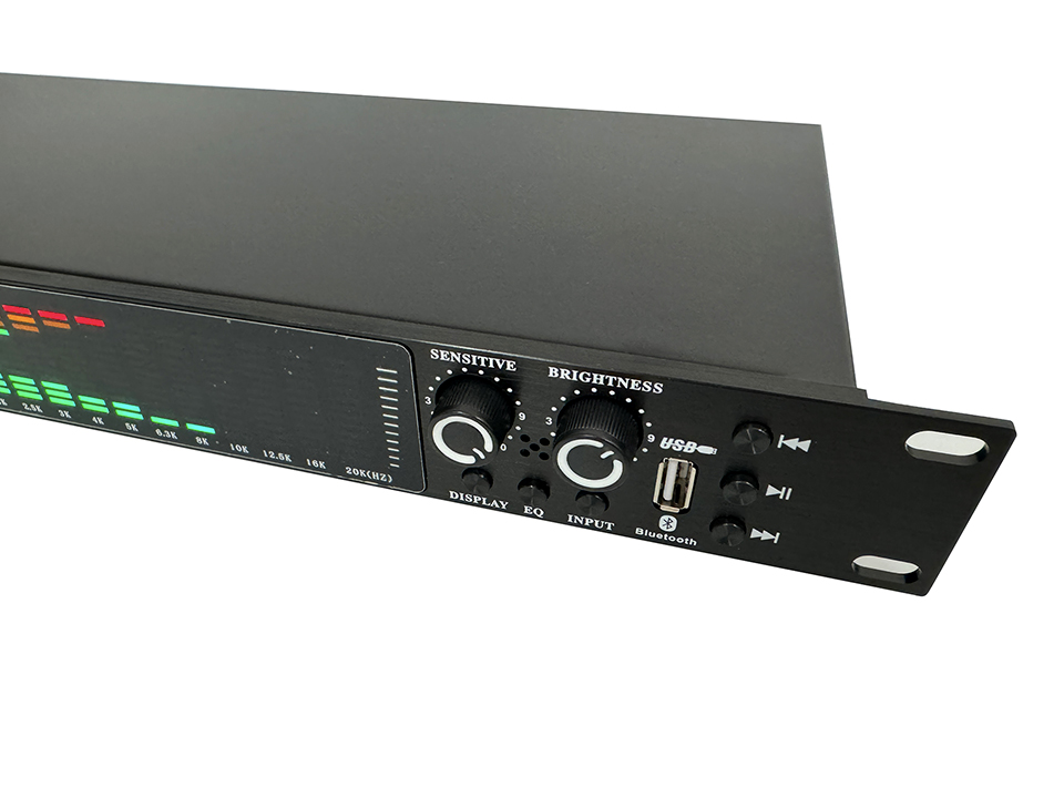 ● Область отображения спектра: предварительные точки, которые могут отображаться, составляют от 20 Гц до 20 кГц, и каждая Частотная точка имеет 12 сегментов светового дисплея.