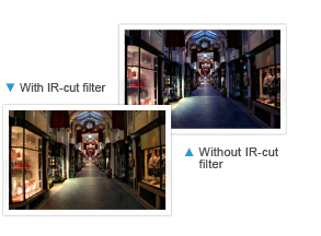 В течение дня отсекаемый ИК-фильтр блокирует попадание инфракрасного света в объектив для истинного воспроизведения цвета.