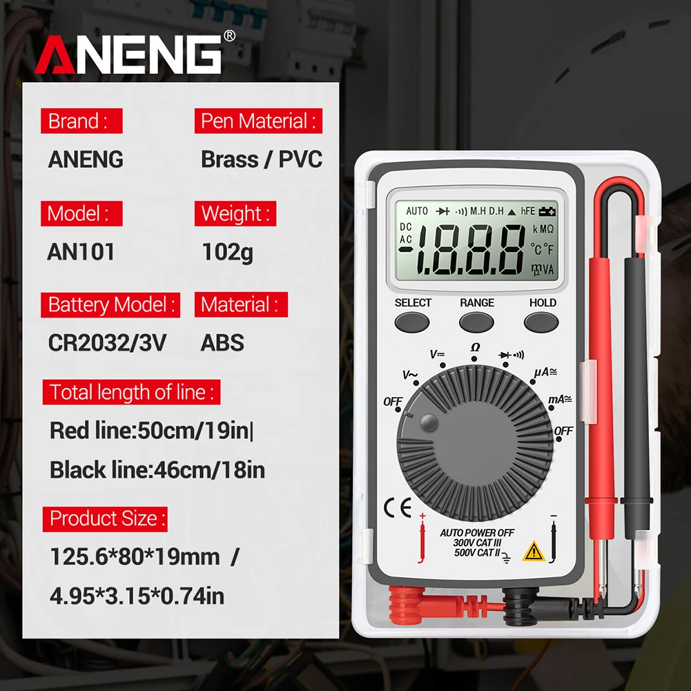 ANENG AN101 LCD Pocket Digital Multimeter AC/DC Automatic Portable Voltmeter Ammeter Ohm Tester