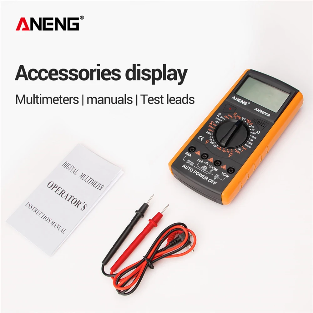 ANENG AN9205A + ЖК-дисплей 1999 отсчетов Цифровой мультиметр портативный Вольтметр постоянного/переменного тока Амперметр тестер сопротивления