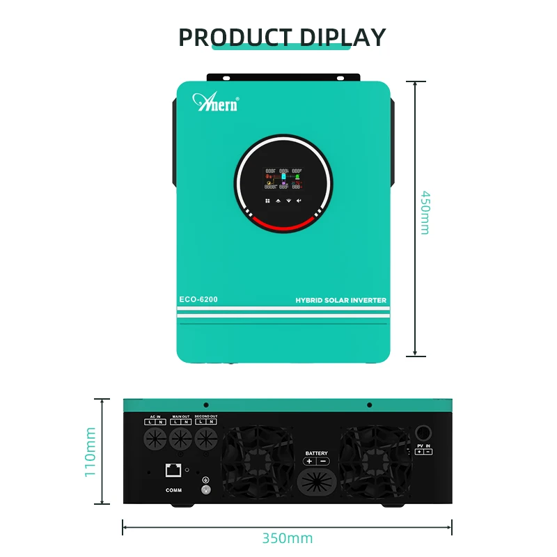 Гибридный солнечный инвертор Anern 8.2KW 10.2KW Встроенный контроллер Mppt 140A 500VDC PV Вход 230VAC 48V Гибридный инвертор с чистой синусоидой