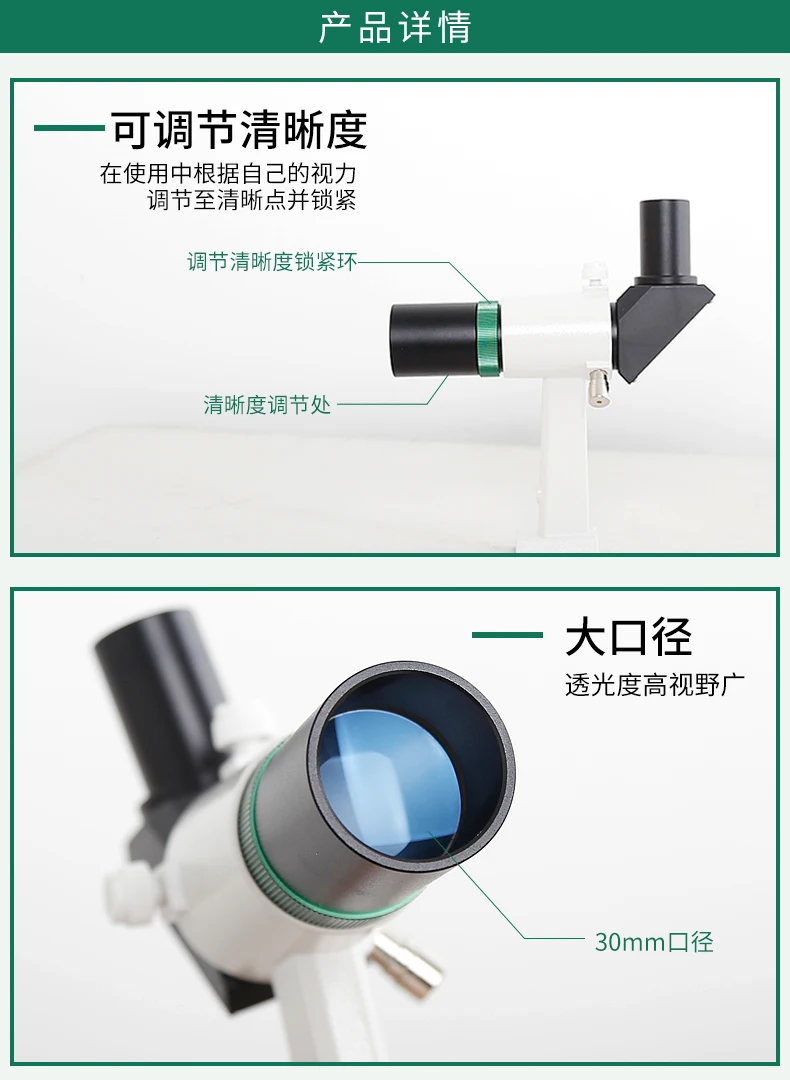 Особенности: Зеленое металлическое кольцо может регулировать четкость; Включает точную калибровку Перекрестия; И окуляр, и линза объектива имеют многослойное покрытие для более четкого изображения;