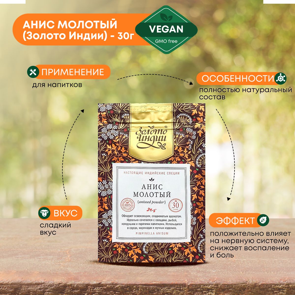 Анис зездчатый / Бадьян молотый специи и приправы Золото Индии, 30г