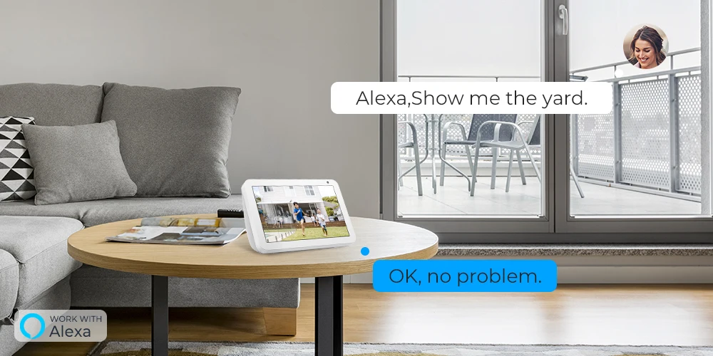 Камера работает с камерой Alexa. Таким образом, вы можете использовать голосовое управление без рук, чтобы видеть, что происходит перед объективом камеры.