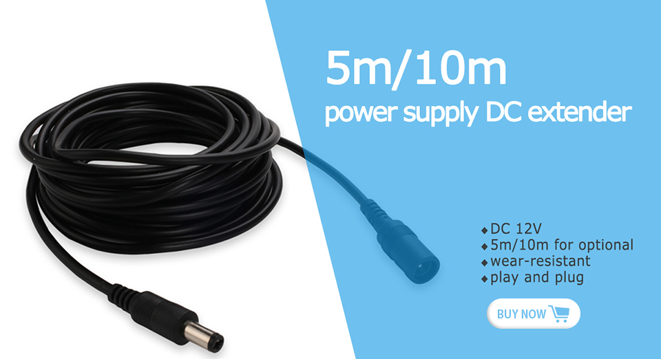 Если камера находится слишком далеко от розетки. Вы можете приобрести удлинительный кабель питания 5м/10м, нажав на это изображение. По умолчанию камера поставляется с кабелем питания длиной 1,2 метра.