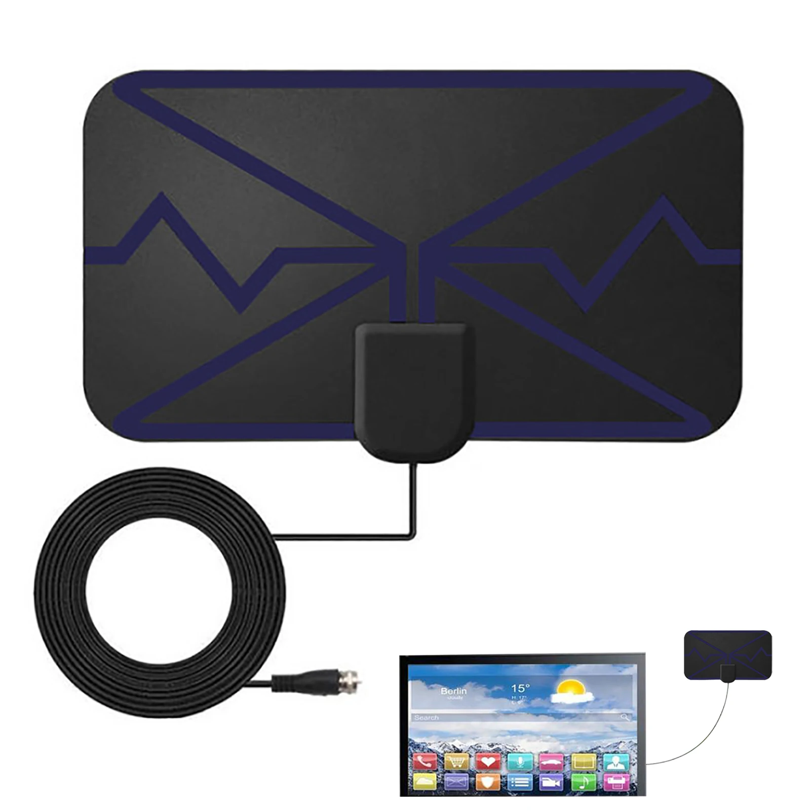 В нашей антенне Smart TV используется Самая передовая микросхема Smart IC и технология Clean_Peak Filter для фильтрации сотовой связи. Модернизированный мощный усилитель сигнала позволяет больше не сталкиваться со слабыми сигналами и размытыми изображениями. И он может принимать сигналы с любого направления.