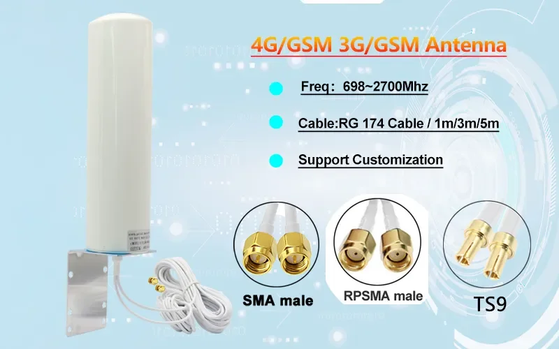 <span class="SnowProductCharacteristics_SnowProductCharacteristicsItem__titleContent__534v9">Antenna Name</span> 2*2 Cable TS9 SMA RPSM Male 4G LTE 3G GSM IP67 Mimo Outdoor Waterproof Aerial 28dbi Omni WiFi Router Antenna for Wireless