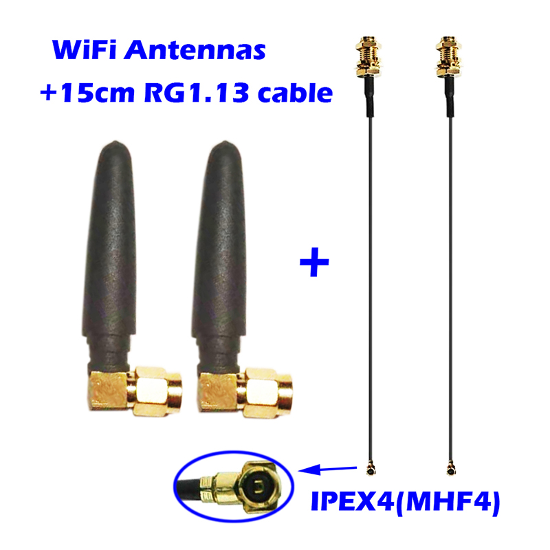 2 штуки WiFi антенна + 15 см U.FL/IPEX4(MHF4) к RP SMA/SMA RG1.13 Кабельная сборка