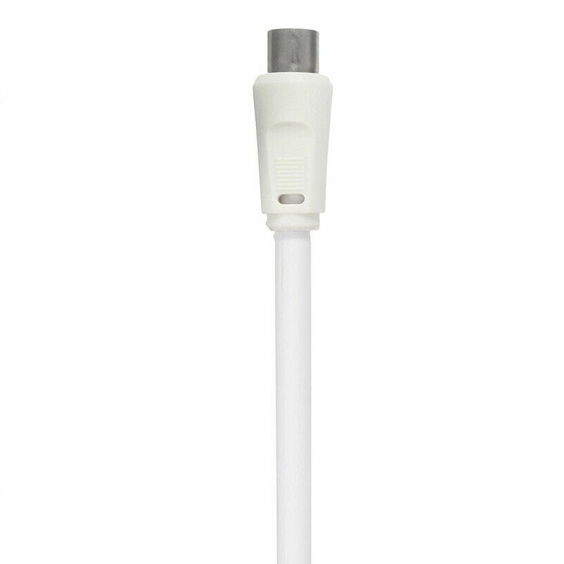 РЧ штекер на Прямоугольный штекер Белый кабель свободного обзора. Идеально подходит для ограниченного пространства или для предотвращения повреждения телевизора и видеооборудования в случае случайного удара по нему. Поставляется с муфтой RF «Мама-мама», которая идеально подходит для крепления к существующему кабелю или использования в качестве смены пола.
