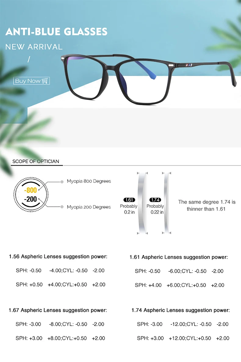 Myopia Glasses Choose 1.56 Myopia -0.50 to -3.00