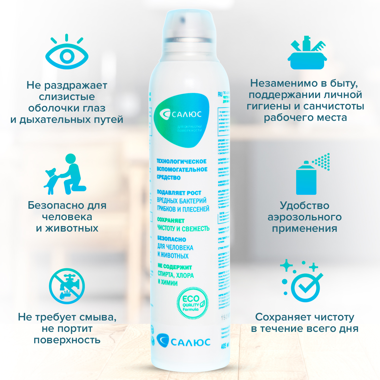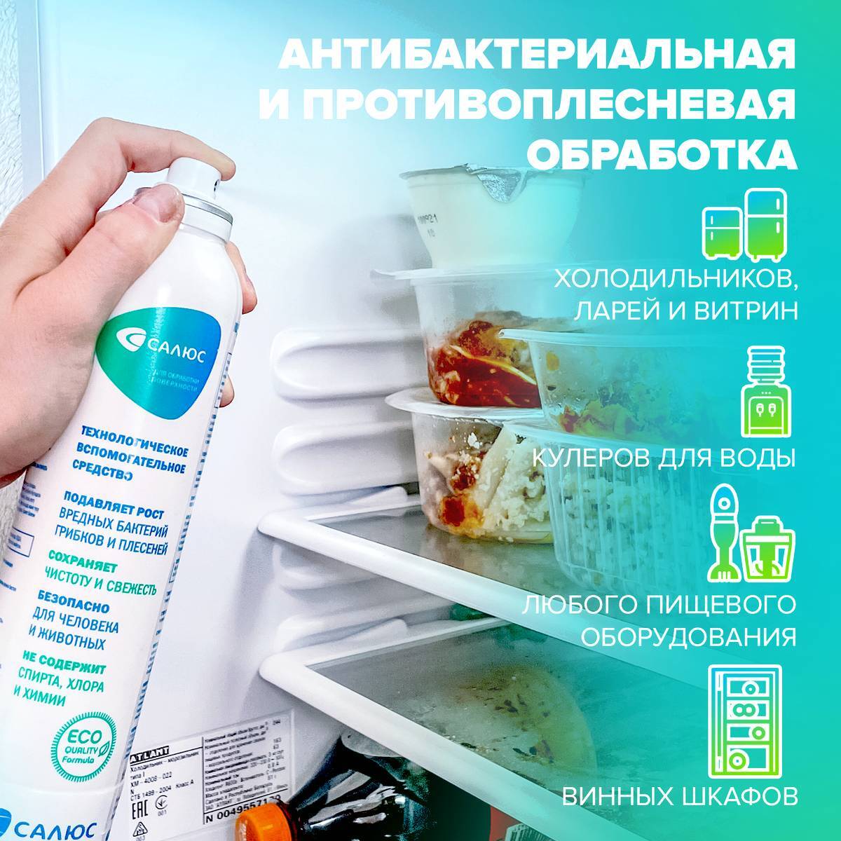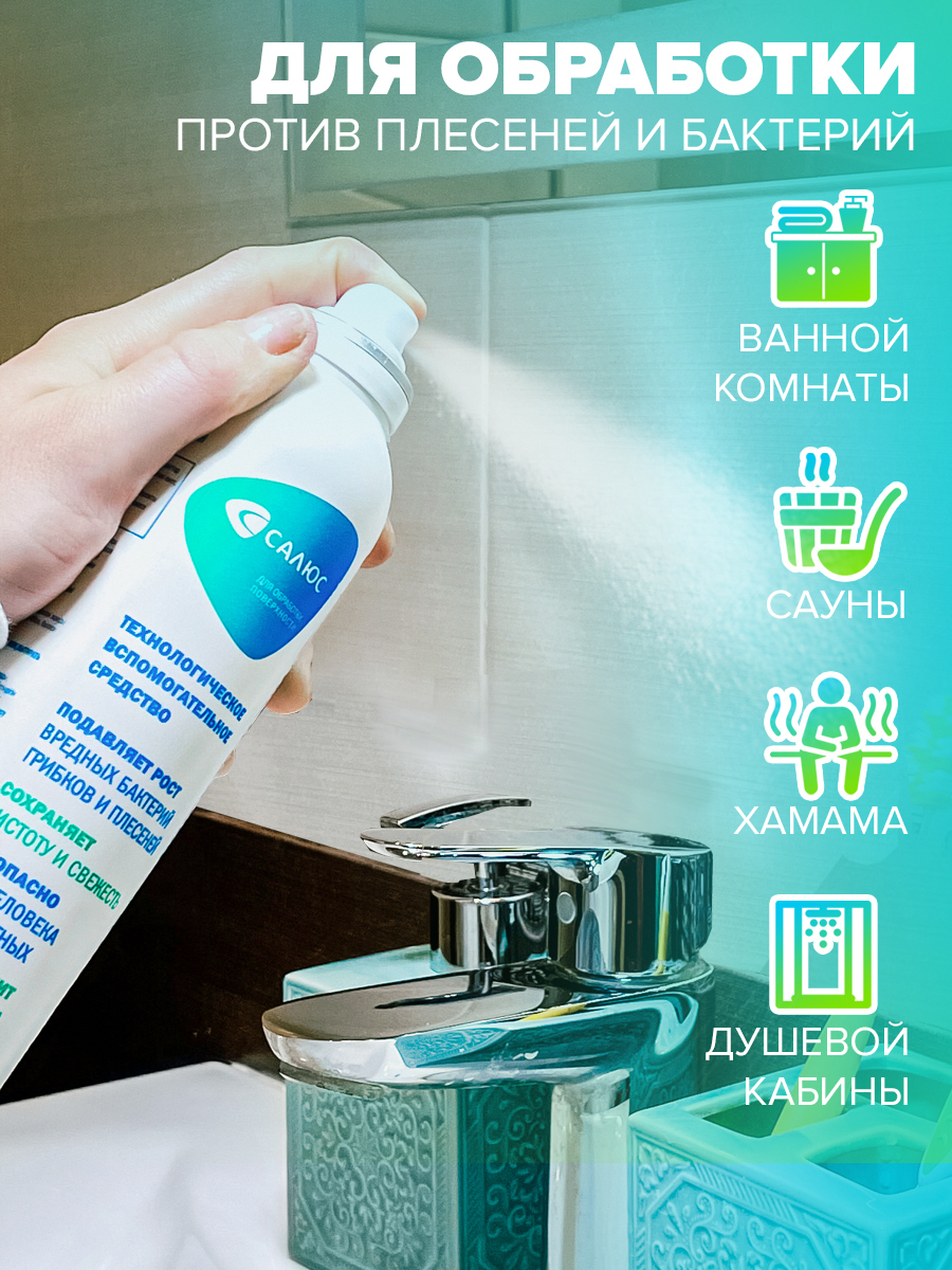 Описание: Антибактериальное средство САЛЮС. Мощное cредство против бактерий, грибов и плесеней станет вашим главным помощником для поддержания санитарной чистоты в быту и на  производстве. Антибактериальные чистящие средства поддержит чистоту на кухне в течении дня (техника и пищевое оборудование, столешница и разделочные доски, раковина и т.д.), а санобработка холодильника и витрин (2-3 распыления в каждый отсек) позволит увеличить срок хранения продуктов. Универсальное чистящее средство эффективно против спор грибов и плесеней в кондиционерах, системах вентиляции и воздушных фильтрах салона автомобиля. Обработка лотка и миски поможет в уходе за питомцем. Корм в обработанной посуде долго не портится (актуально, если оставлять корм «про запас»).Чистящее средство САЛЮС удаляет и предотвращает появление плесени и грибков в ванной комнате и душе, сауне и т.д. Не портит обрабатываемые материалы, обладает дезодорирующим свойством, не раздражает органы дыхания, не влияет на геном человека и животных.​ВАЖНО! Не смывать и не вытирать  САЛЮС с поверхности. Не использовать совместно с средствами на основе хлора и ПАВ.