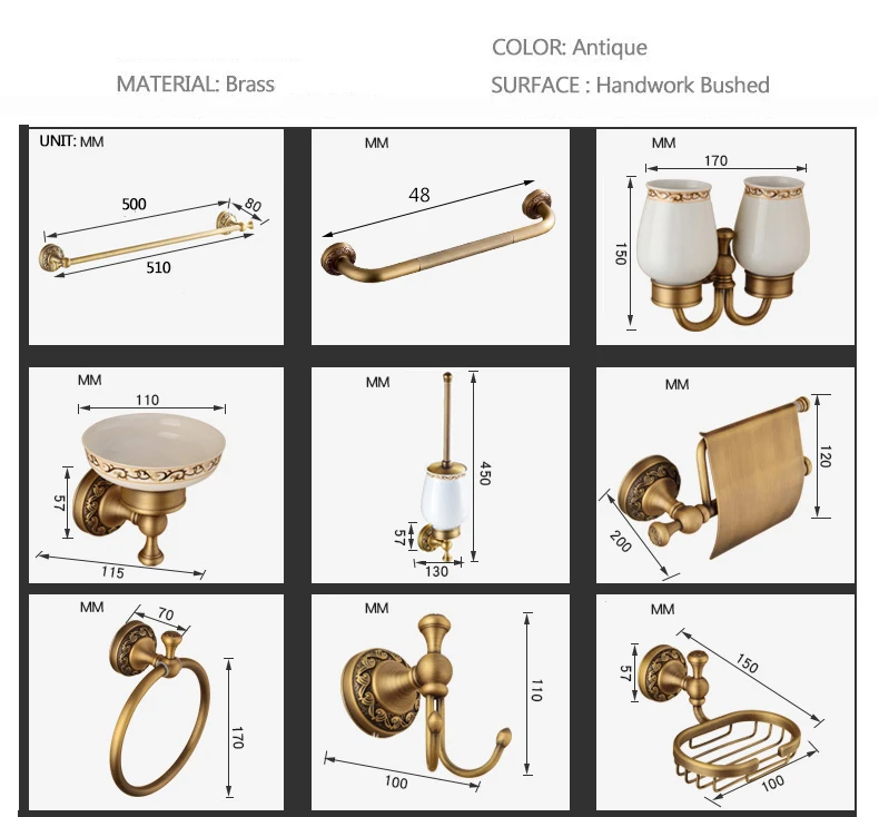 Античный латунный матовый аксессуар для ванной комнаты, Полка для полотенец, держатель для бумаги, крючок для ткани, держатель для мыла, чашки, держатель для туалета