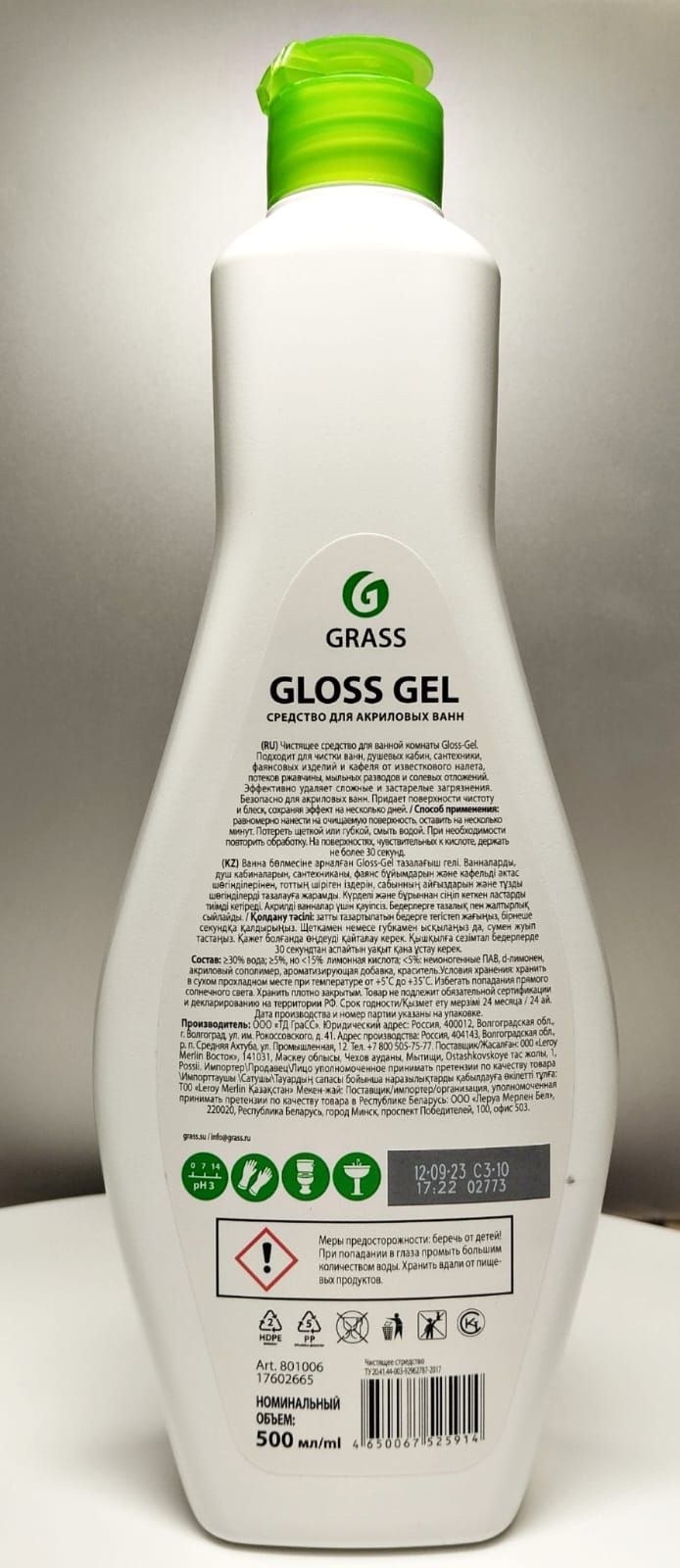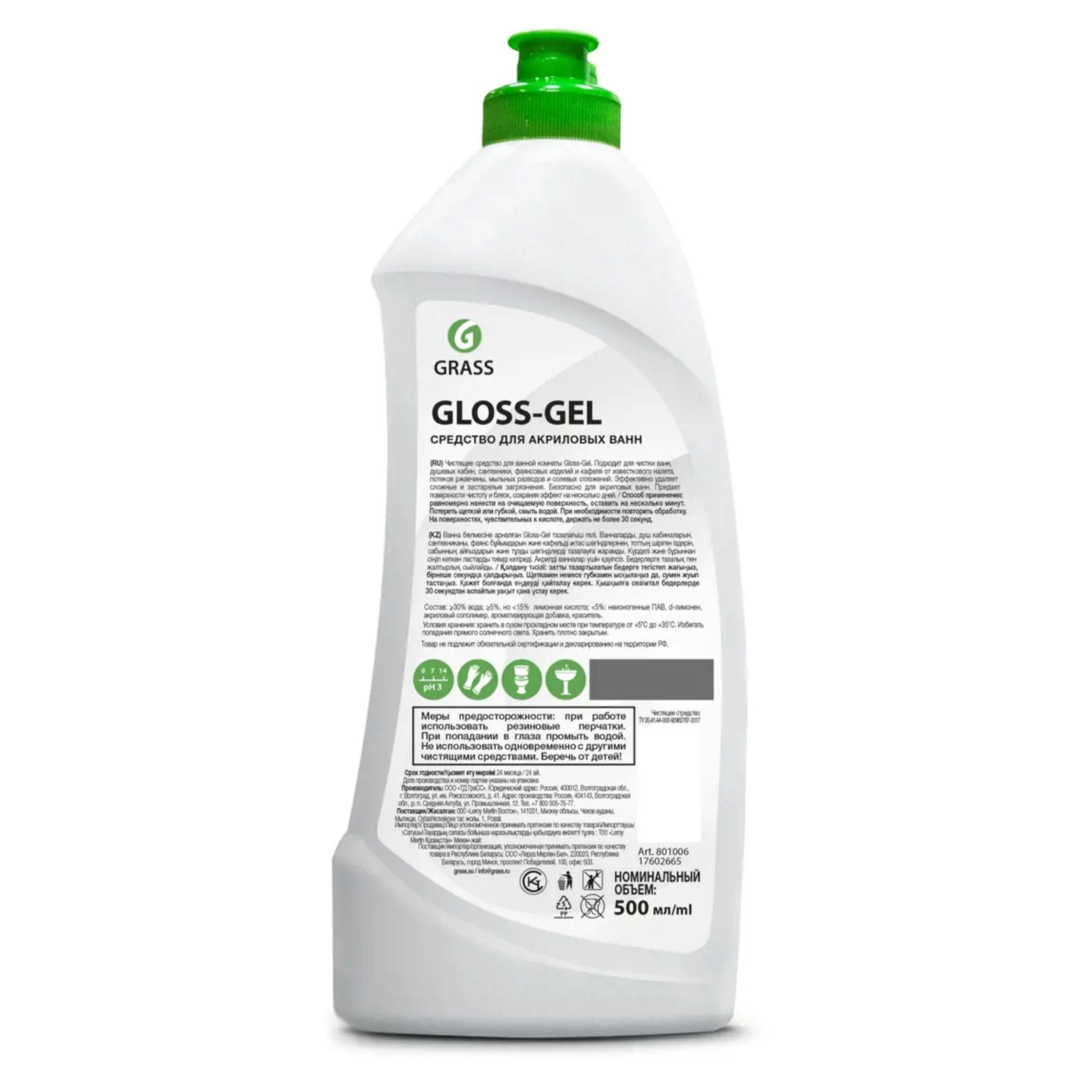 Описание: Средство для акриловых ванн Grass позволит за считанные минуты очистить поверхность сантехники, ванны и душевой кабины от желтизны, известкового и мыльного налета не повредив при этом ее покрытие. Кроме того, уже обработанная поверхность останется чистой и блестящей ещё несколько дней. Флакона объемом 0,5 л хватит на продолжительный срок, что позволит сэкономить семейный бюджет. Чистящий состав обладает высокой моющей способностью и не выделяет агрессивного запаха.