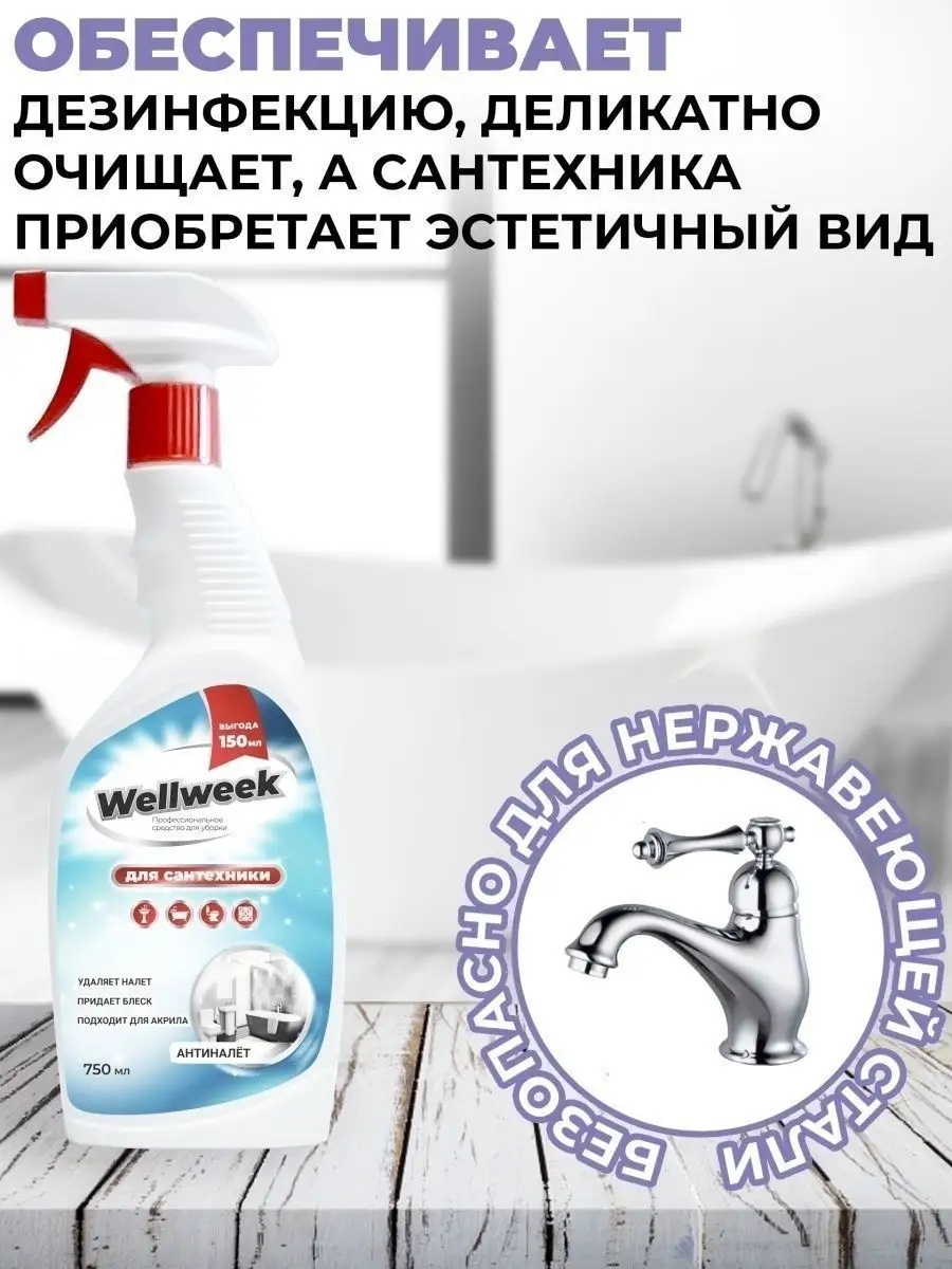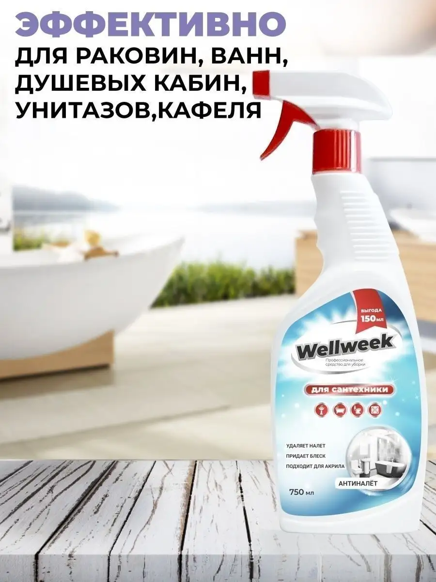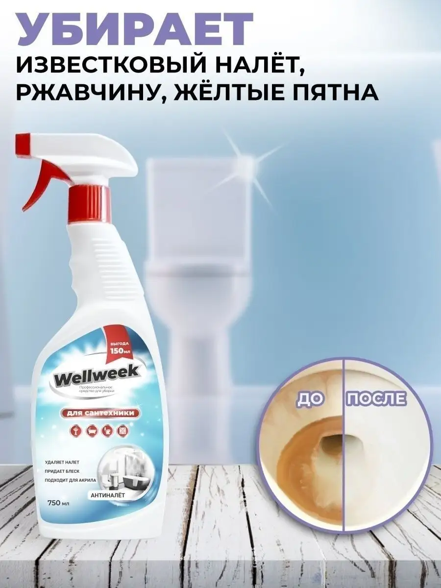 Описание: Спрей Антиналет от Wellweek незаменимый помощник хозяйке, маме, дочери, сестре, в борьбе с налетом ржавчиной на сантехнике. Чистящее средство антиналет от Вэлвик подходит для ванны, туалета, душевых кабин, раковин, биде, смесителей и кранов и др. Моющее средство от Вэлвик предназначено для удаления известкового налёта, соляных отложений, ржавчины, жирных плёнок. Средство для ванной, в том числе и акриловой и туалета убирает мыльные подтёки, пигменты, грибковые поражения. Способ применения: Нанесите на поверхность, оставьте на поверхности в зависимости от степени загрязнения от 30 сек до 2 минут. После выдержки тщательно смойте водой. Осторожно на алюминии и некоторых видах стеклокерамики, на поврежденном металле. Средства для уборки от Велвик придают блеск, не оставляют разводов, как кр азелит в ювелирных изделиях. Антиналет от Вэлвик грасс мейстер среди всех антиналетов. Концентрированный спрей анти налет легко справляется с водяным камнем и известковым налетом в утюгах.