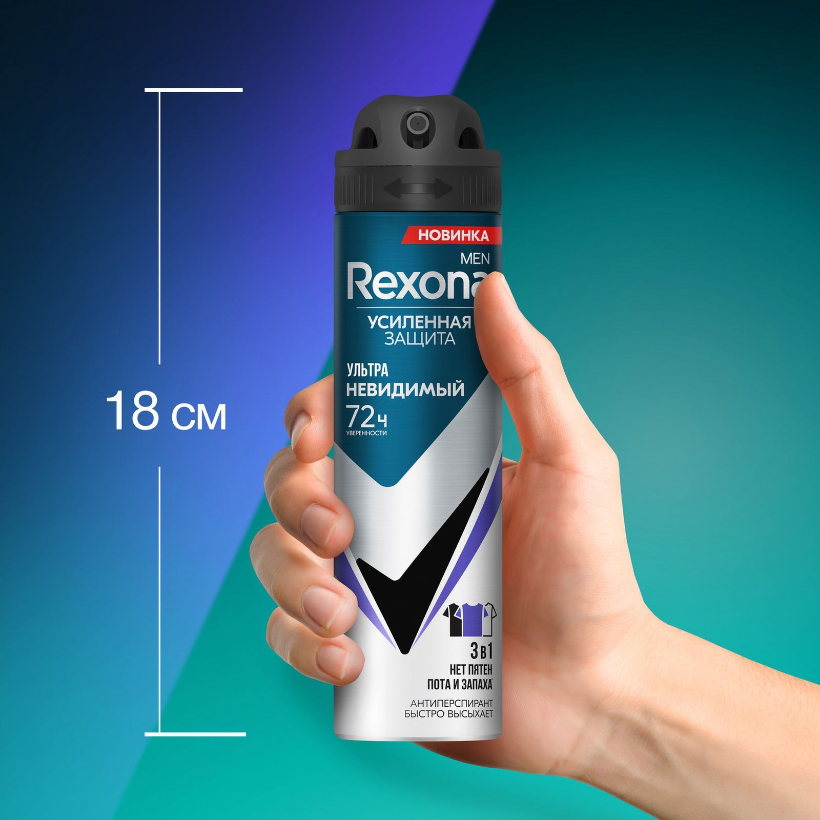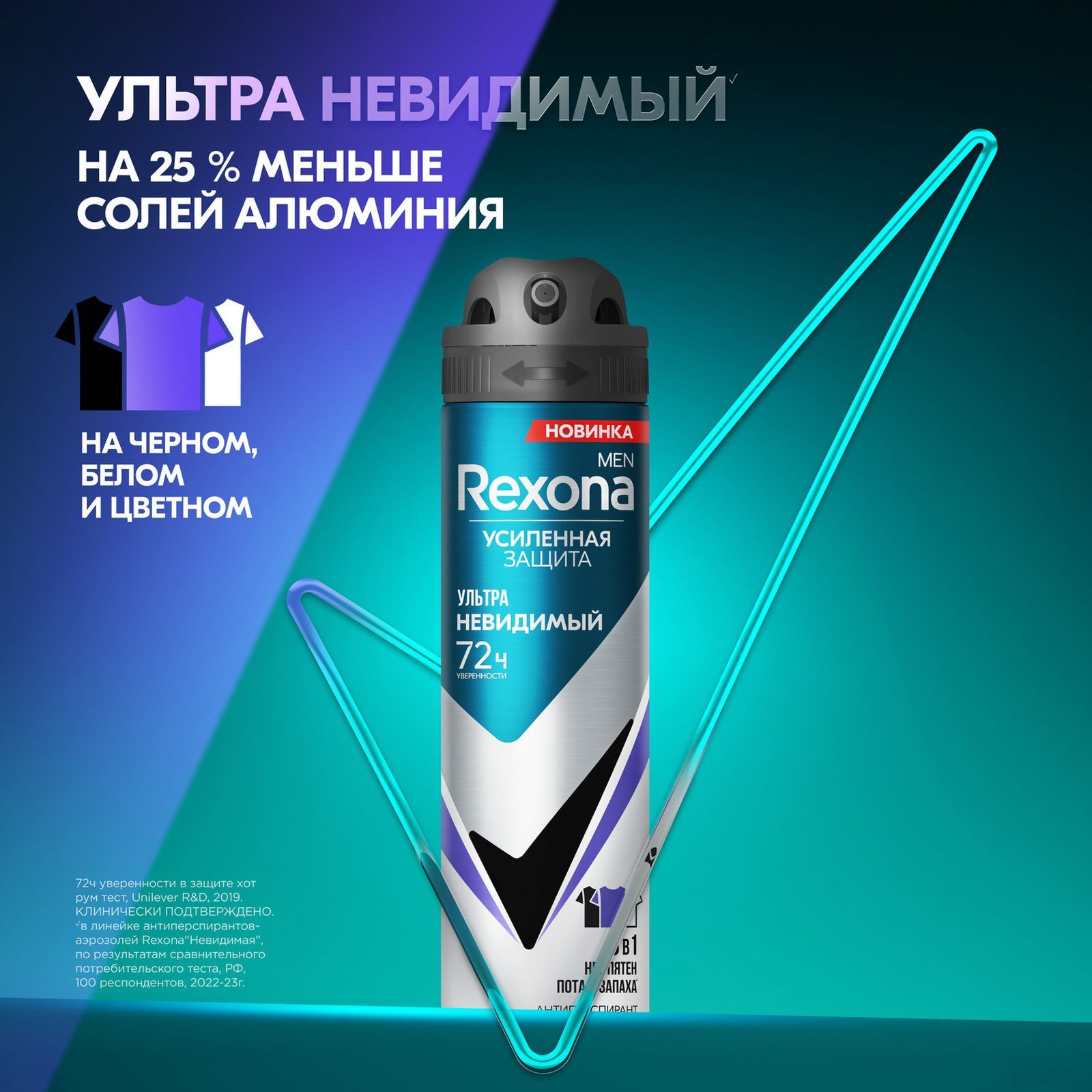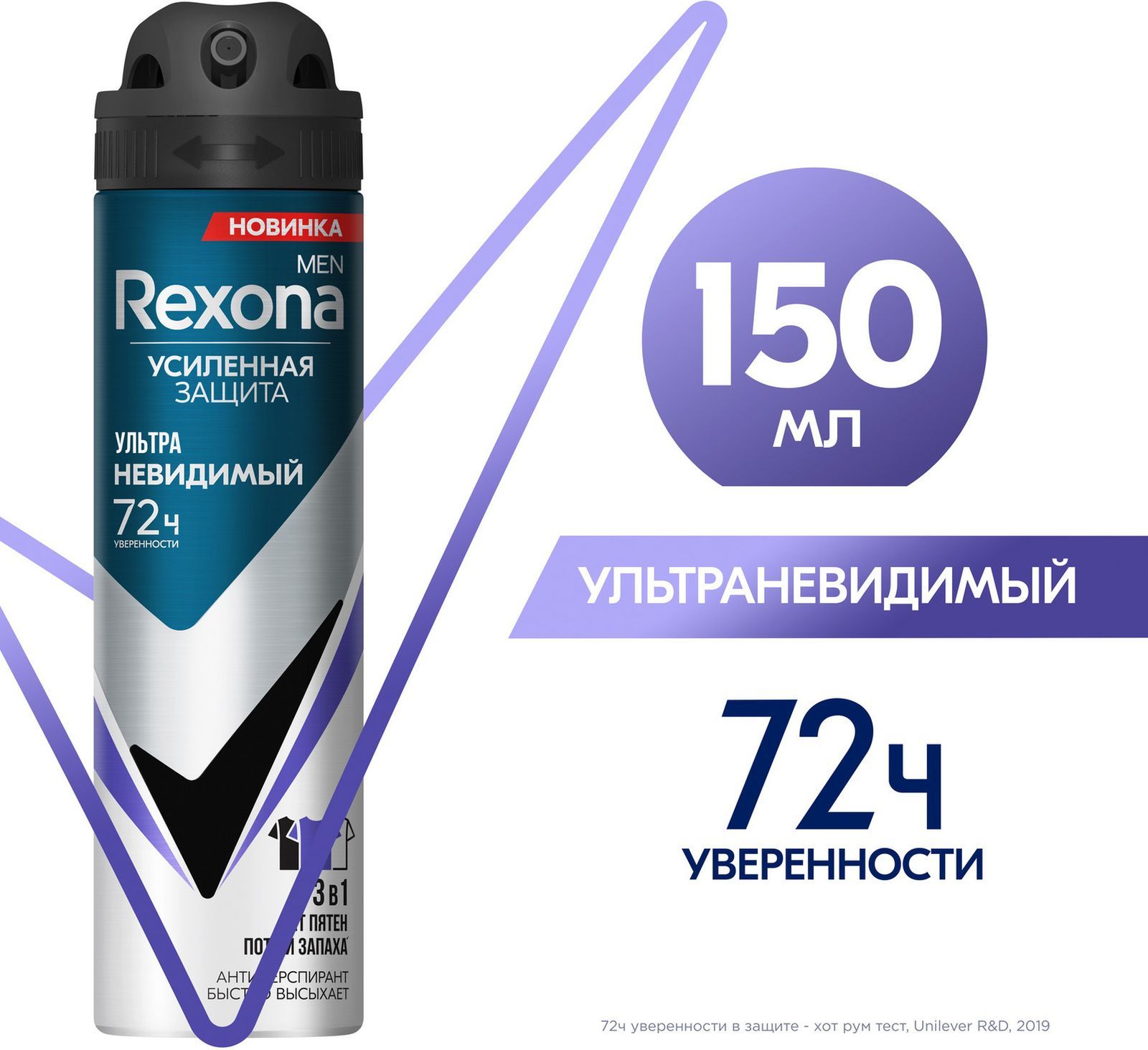 Антиперспирант-аэрозоль Rexona Men УЛЬТРАНЕВИДИМЫЙ, 72 ч уверенности, 3 в 1, нет пятен, пота и запаха, 150 мл